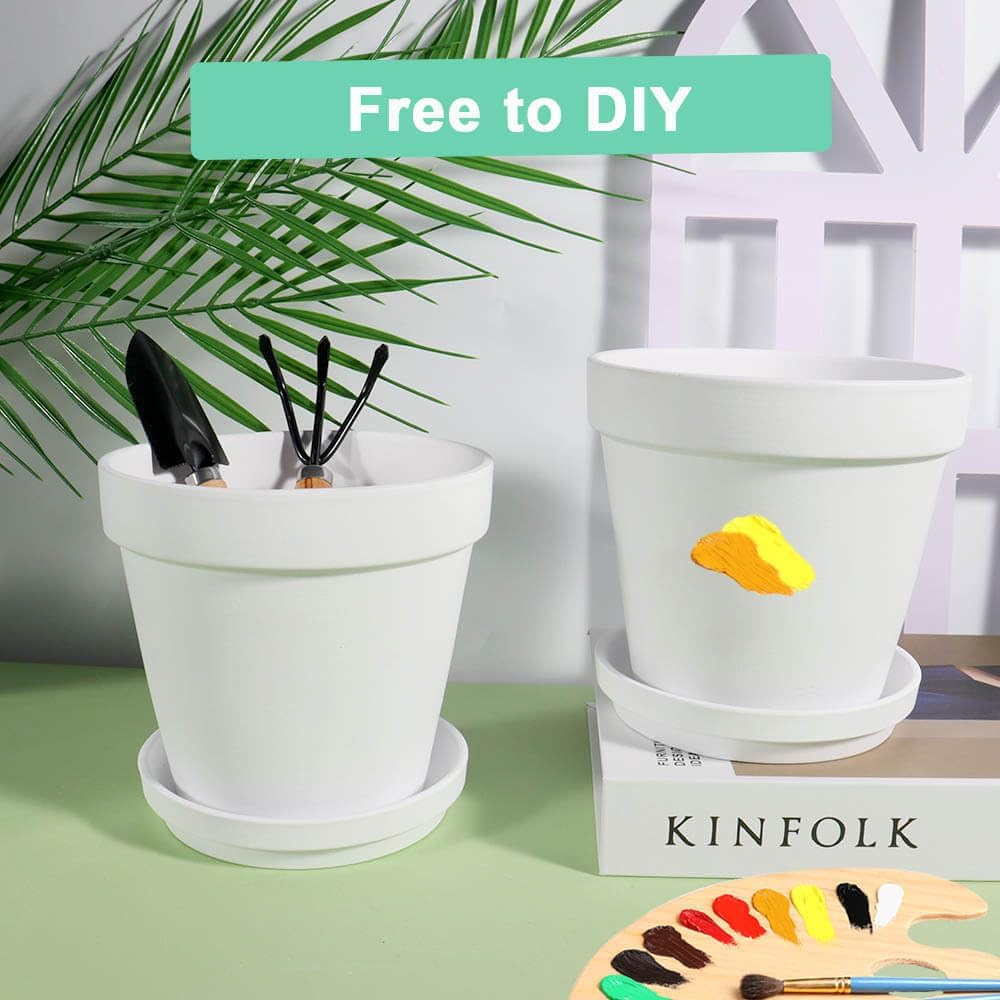 - 【Drainage Holes and Saucer】Each terra cotta with paintcomes with a small drainage hole at the bottom, increasing drainage efficiency when watering, protecting the health of your plant. And the saucer can keep your indoor or outdoor clean.