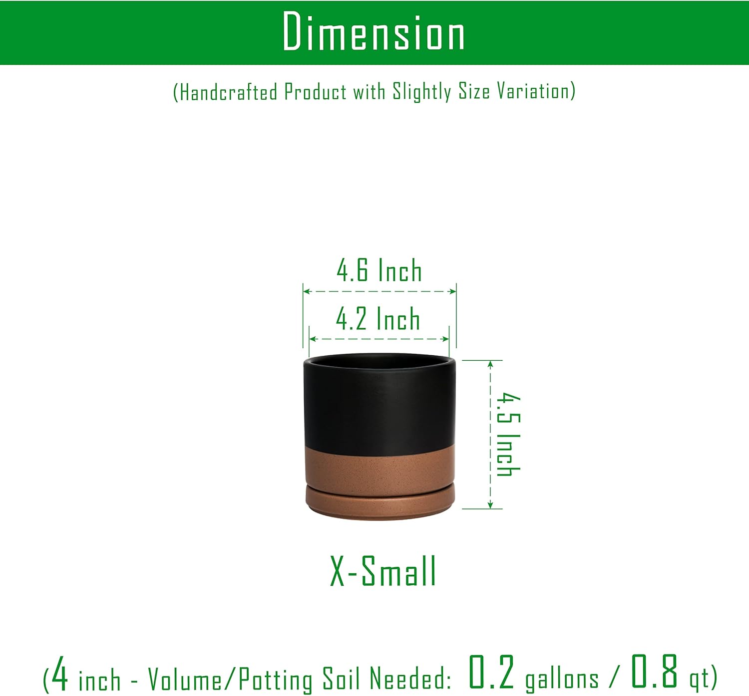 - Set of 4 Small Planter Pots - 4.6" Diameter (4.2" Inner Diameterrr) * 4.5" Height. Volume: 0.2 gallons; Potting Soil Needed 0.8 qt.