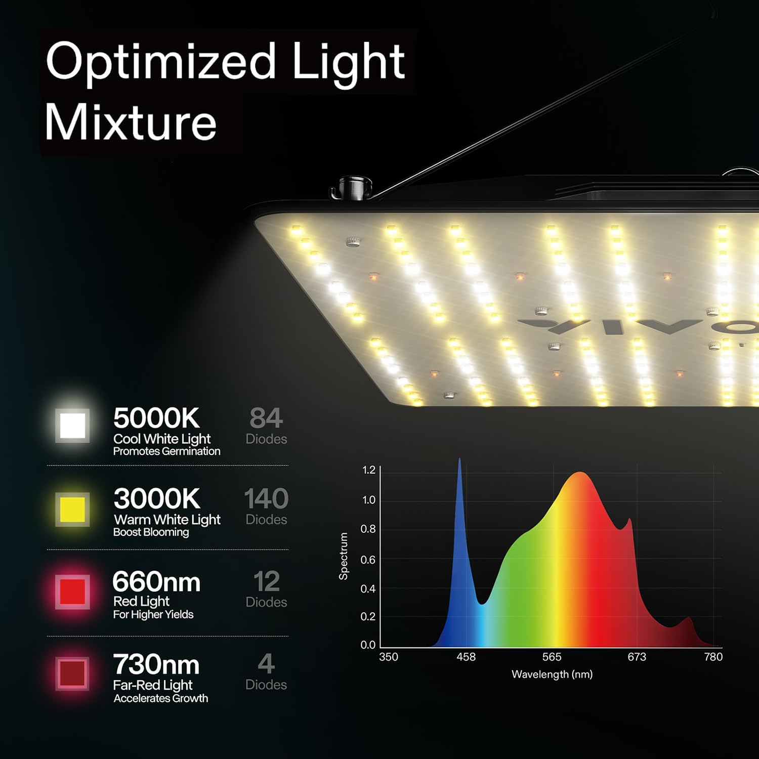 - Lower Costs & High Efficiency Light: VS1000 LED grow lights use the latest LED plant light technology, including Samsung LM301 diodes, high-energy efficiency with 2.75 μmol/J; Extremely high output but consumes only 100W of electricity, making it more efficient than traditional HID lamps and other plant lamps on the market