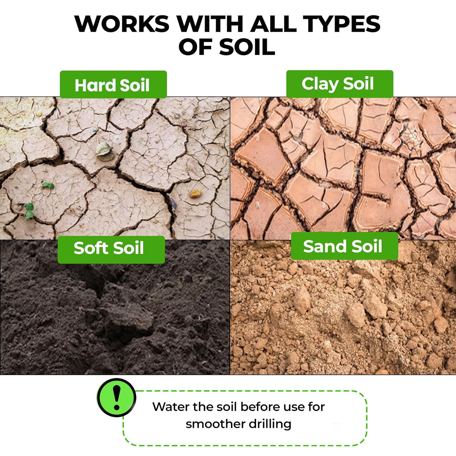 - Ditch Your Shovel for Good: Our high-quality, heavy-duty steel auger drill bits are designed to do the hard work for you At 16 inches long, they handle loose soil, hard ground, sand, clay, and even ice with ease allowing you to enjoy your gardening tasks without the strain