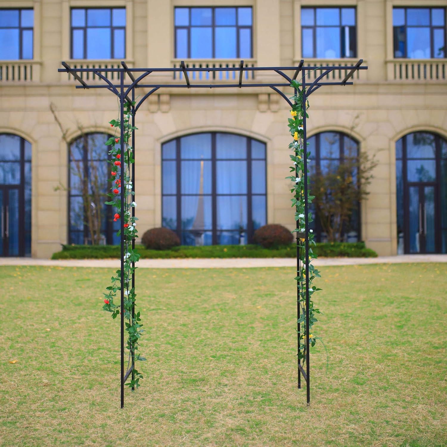 Steel Garden Arch, 7'2" High x 6'6" Wide, Garden Arbor for Various Climbing Plant, Outdoor Garden Lawn Backyard