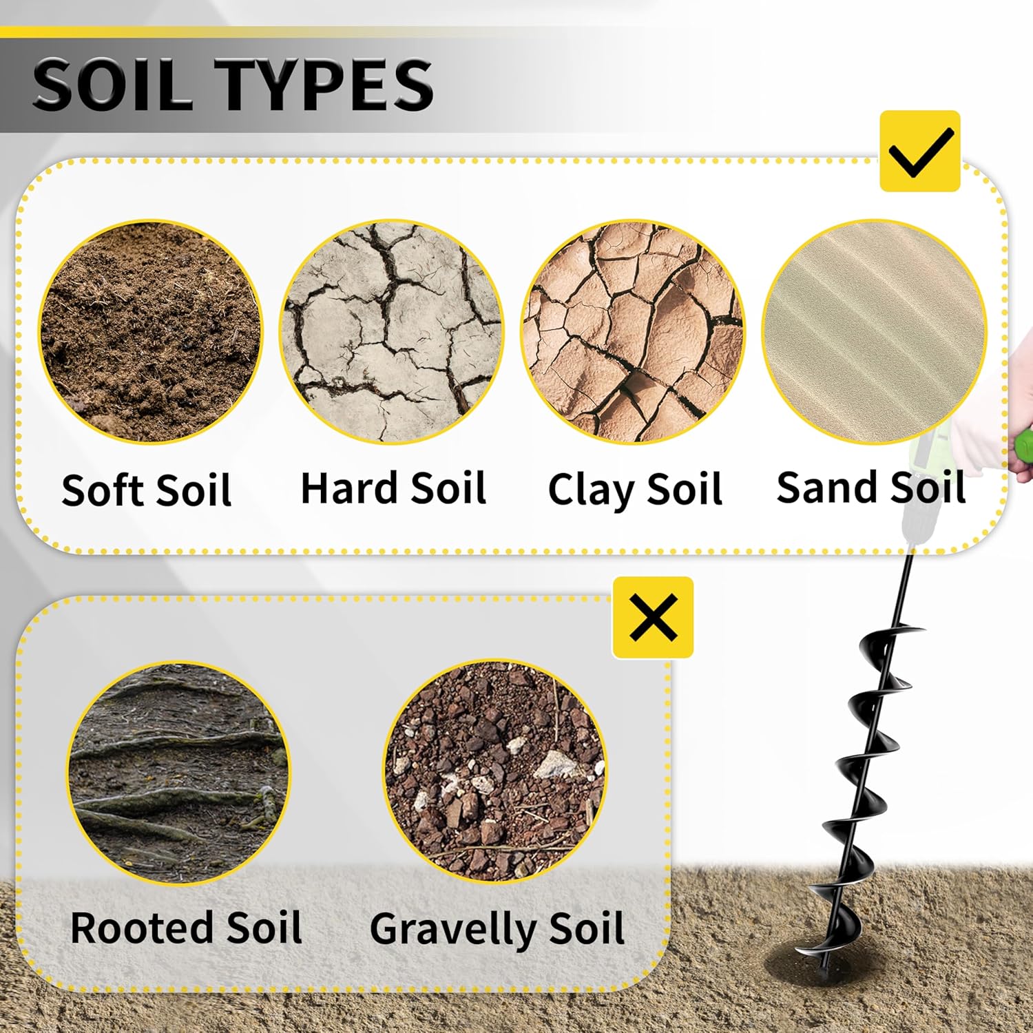 - 【Necessary Practical Gardening Tool】the heavy duty steel garden auger is a MUST-HAVE tool for any yard work. Not only as a bulb planter to plant bulb, bedding plants, flowers, also as a mixer to mix soils, fertilizers and paints. Dig Holes for fence posts, bird feeder poles, ground lights and patio umbrellas.