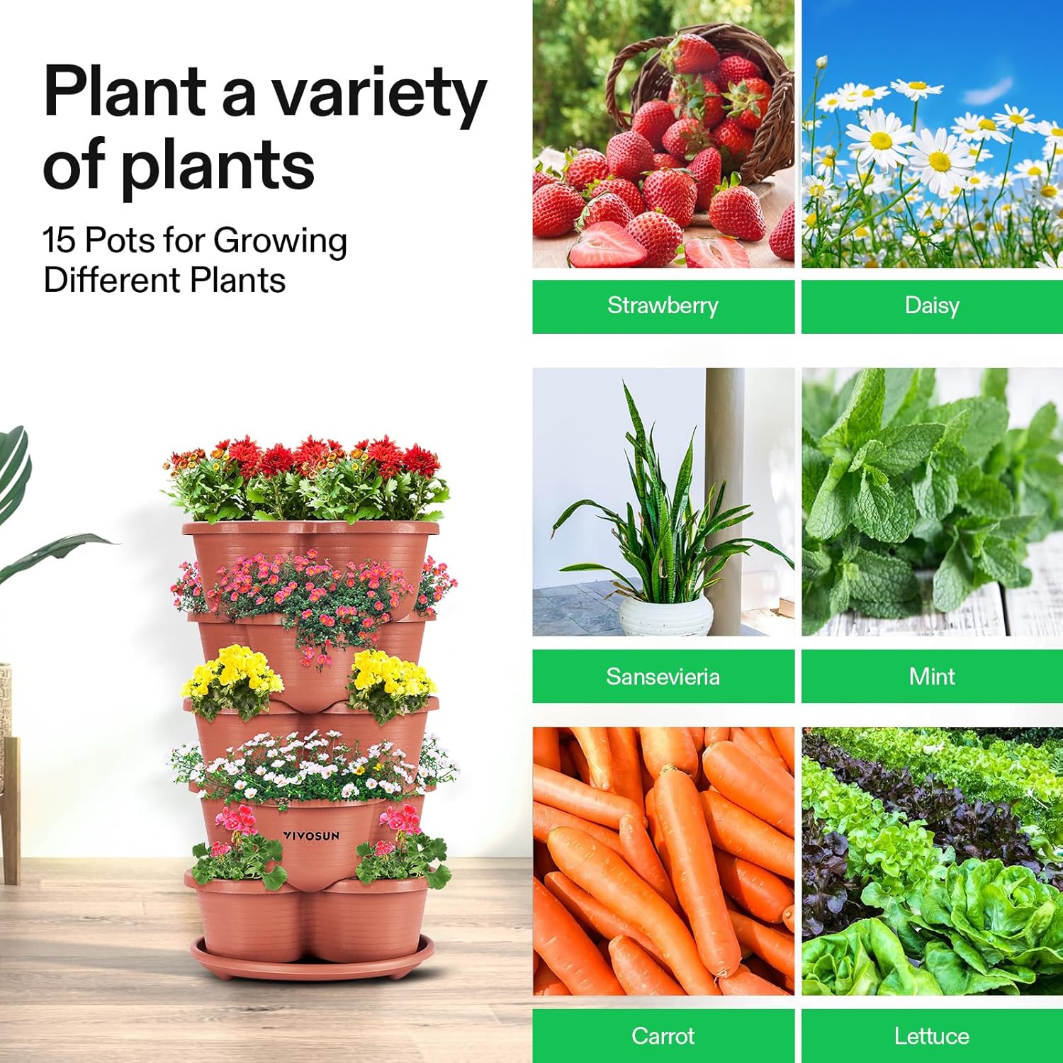 VIVOSUN 2-Pack 5 Tier Vertical Gardening Stackable Planter for Strawberries, Flowers, Herbs, Vegetables, Brown