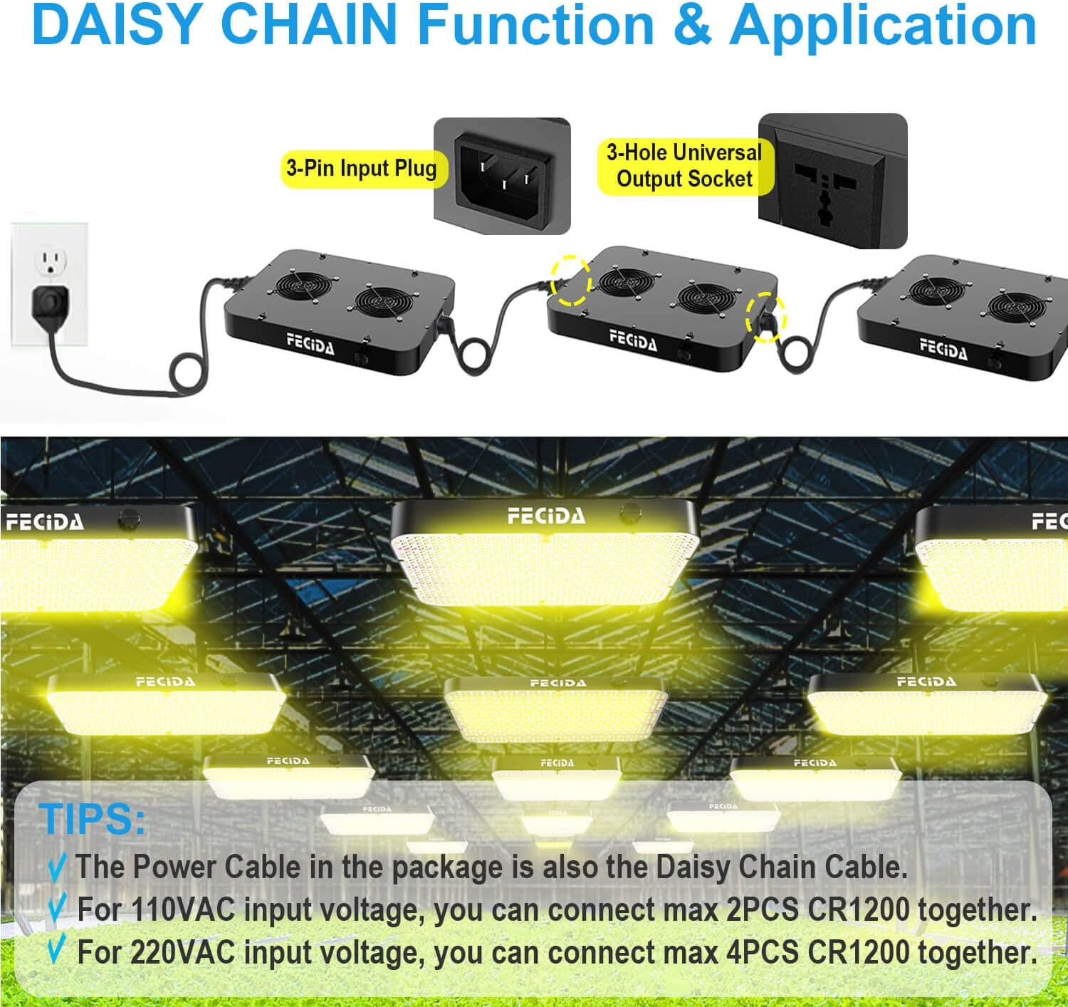 - 【Daisy Chain Function & Easy to Use】The power cable in the package is also just the daisy chain cable. You can use one power cable to connect the grow light to your home electricity and use other power cable to connect the grow lights together if you have more than two grow lights. You can connect max 2 pcs 260 Watt led grow light together.