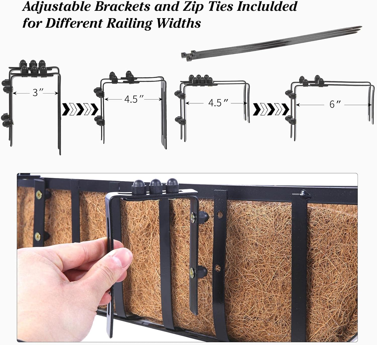 - EASY TO USE: Comes with adjustable brackets that make it easy to hang over any railings measuring 3 to 6" wide; zip ties included for other railings and fences; may also be screwed directly to the wall or window sill.