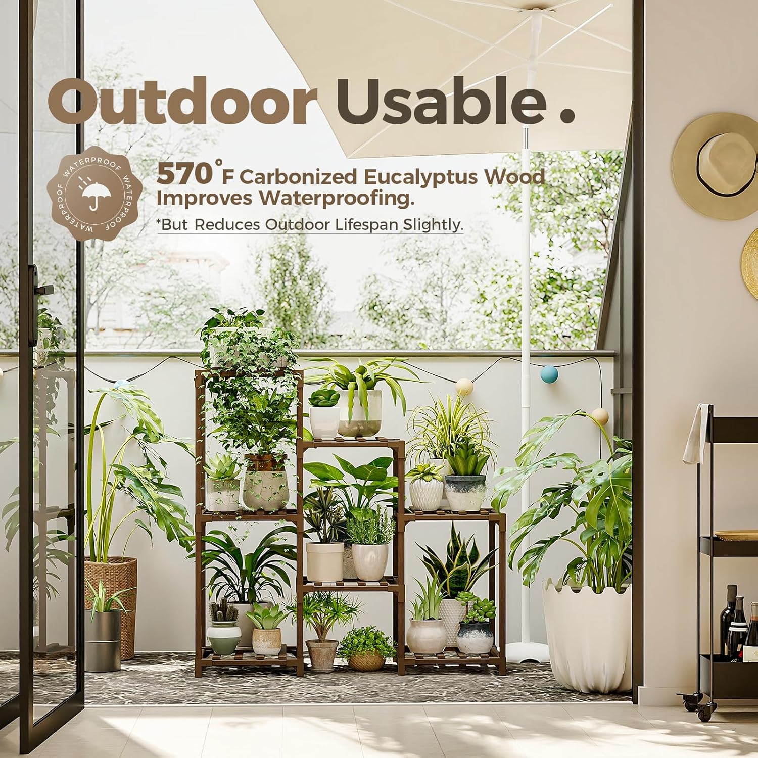 - >7-Pots Plant Stand: Featuring a ladder design that allows unobstructed sunlight, this plant rack accommodates more than 7 pots, making it an ideal decorative piece for organizing your plant collection. Suitable for both indoor and outdoor use.