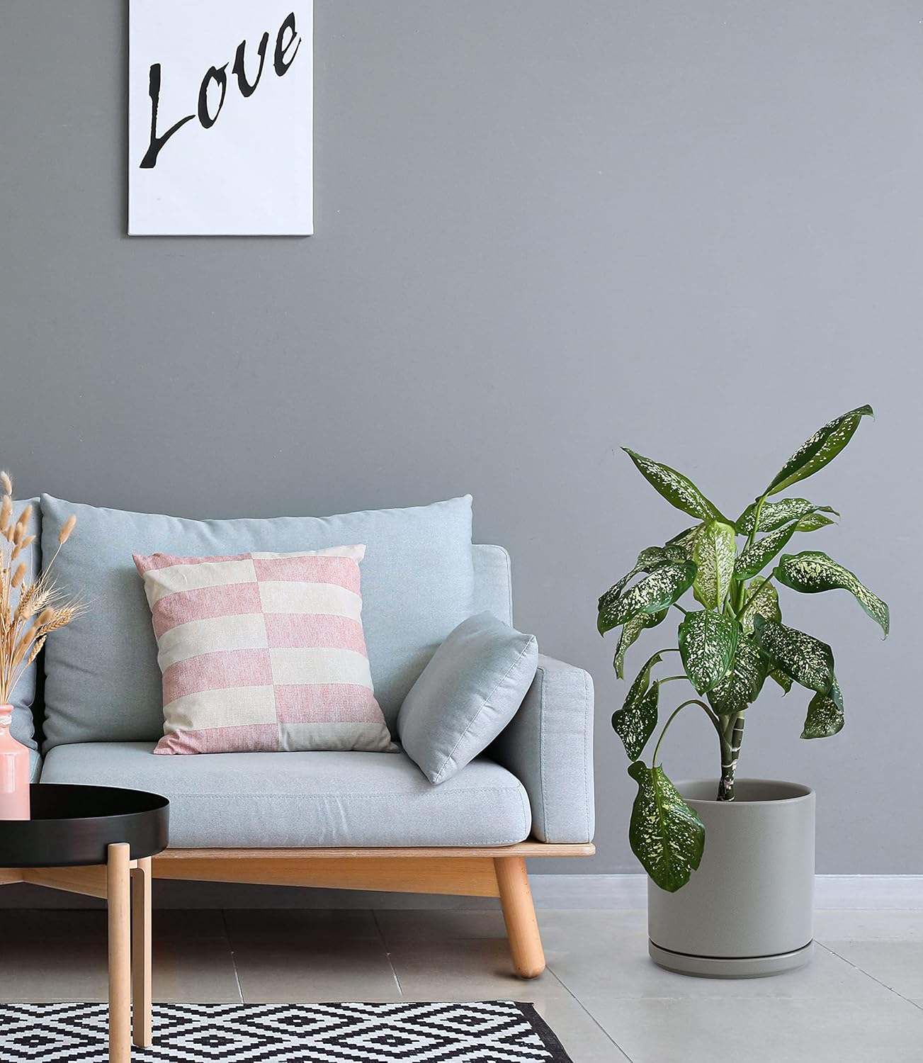 D'vine Dev Set of 2 Plants Pots, 10 Inch Ceramic Planter Pot for Plants with Drainage Hole and Saucer, Speckled Grey, 94-V-E-3