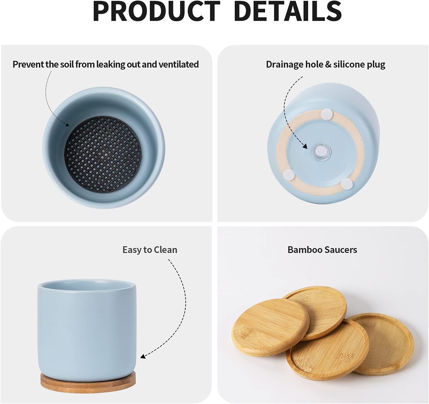 - Planter Size - The planter pot measuring in 4''(width) x 3.7''(height). Attached 4 saucers, 4 round bonsai bottom grid mats. (Plants not included).