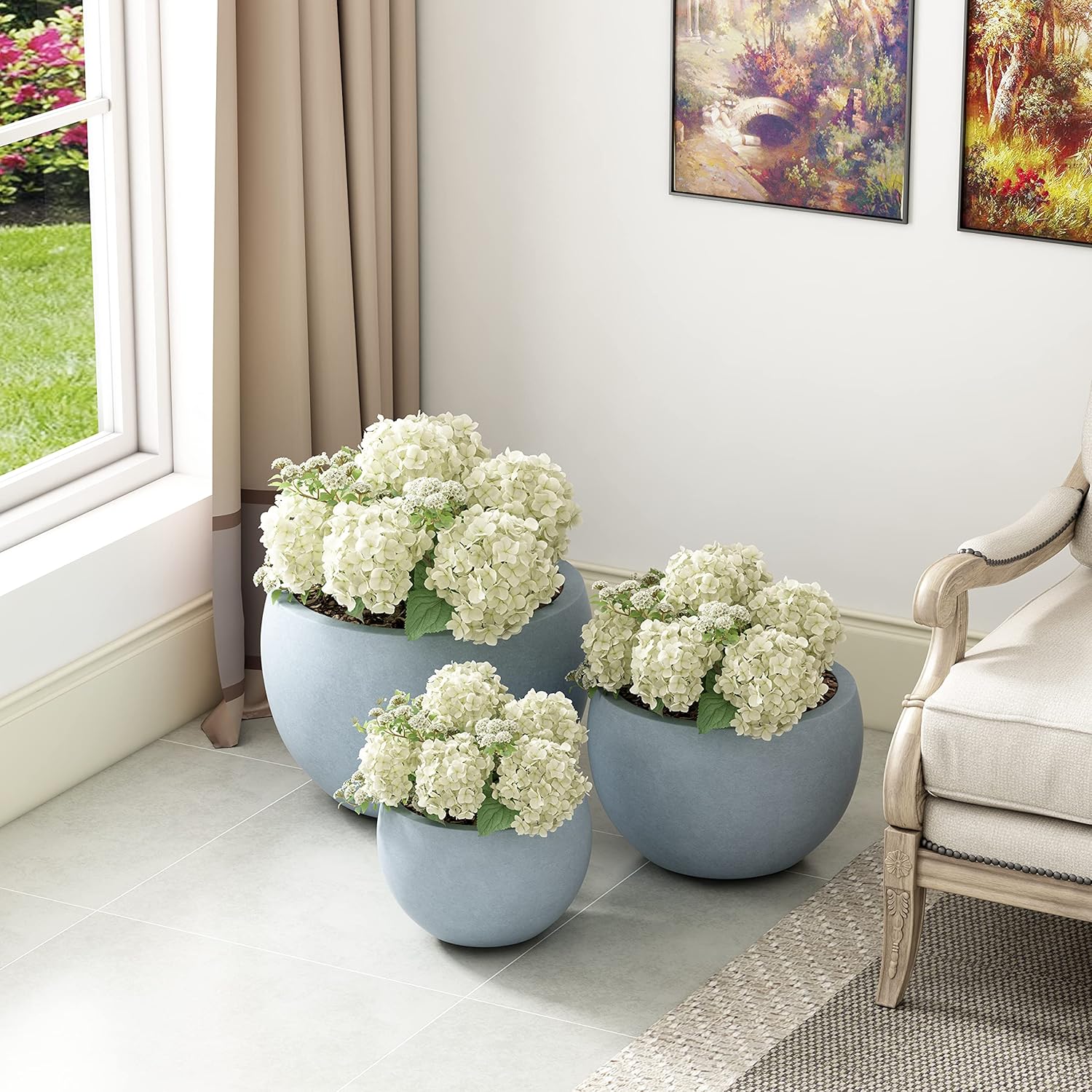 Kante 19.9",15.7",11.8" Dia Round Concrete Planter Set of 3, Outdoor/Indoor Large Bowl Plant Pots with Drainage Hole and Rubber Plug for Garden Patio Balcony Home, Gray