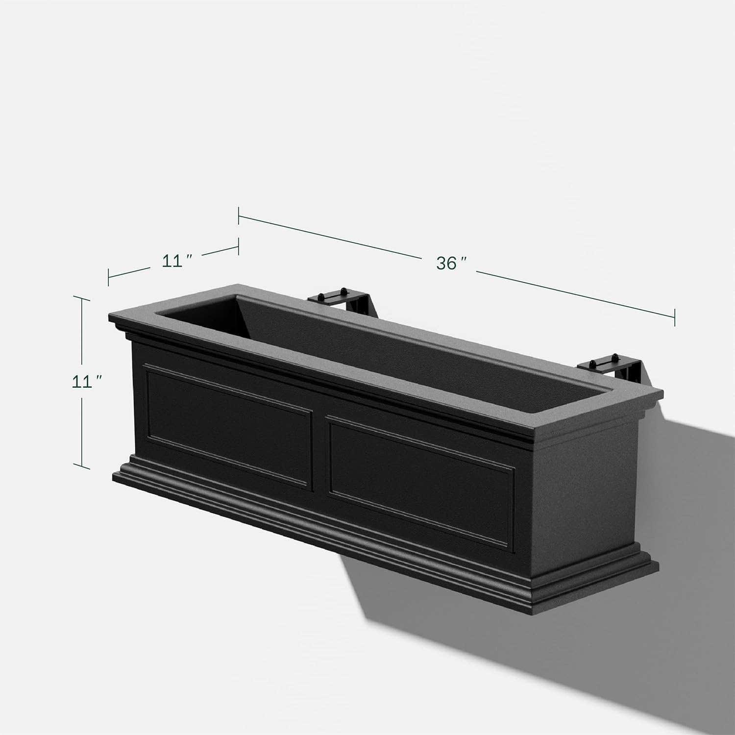 - DIMENSIONS & DETAILS: This railing planterβs exterior dimensions measure 11β in Height, 11β in Width, 36β in Length, and the interior dimensions measure 7.5β in Height, 6.75β in Width, 31.75β in Length