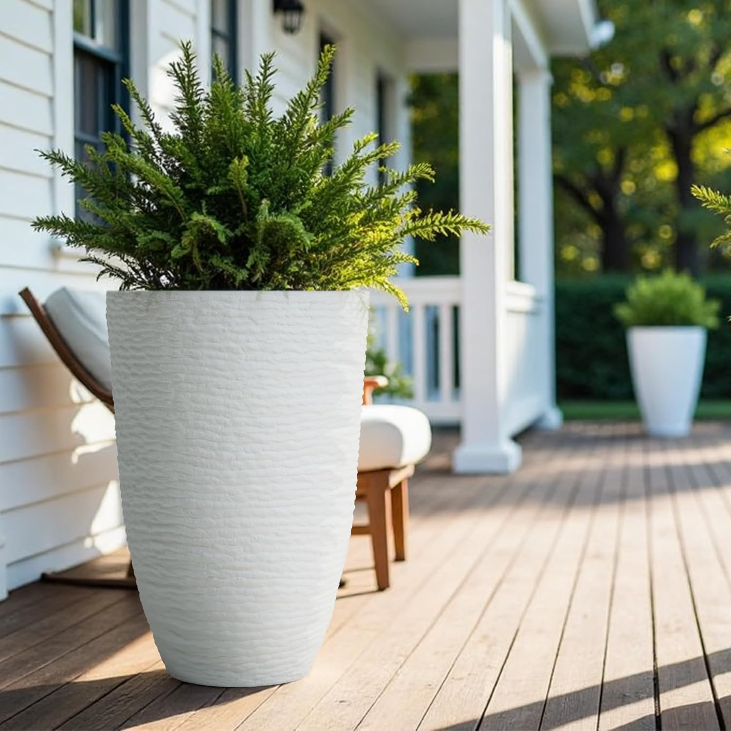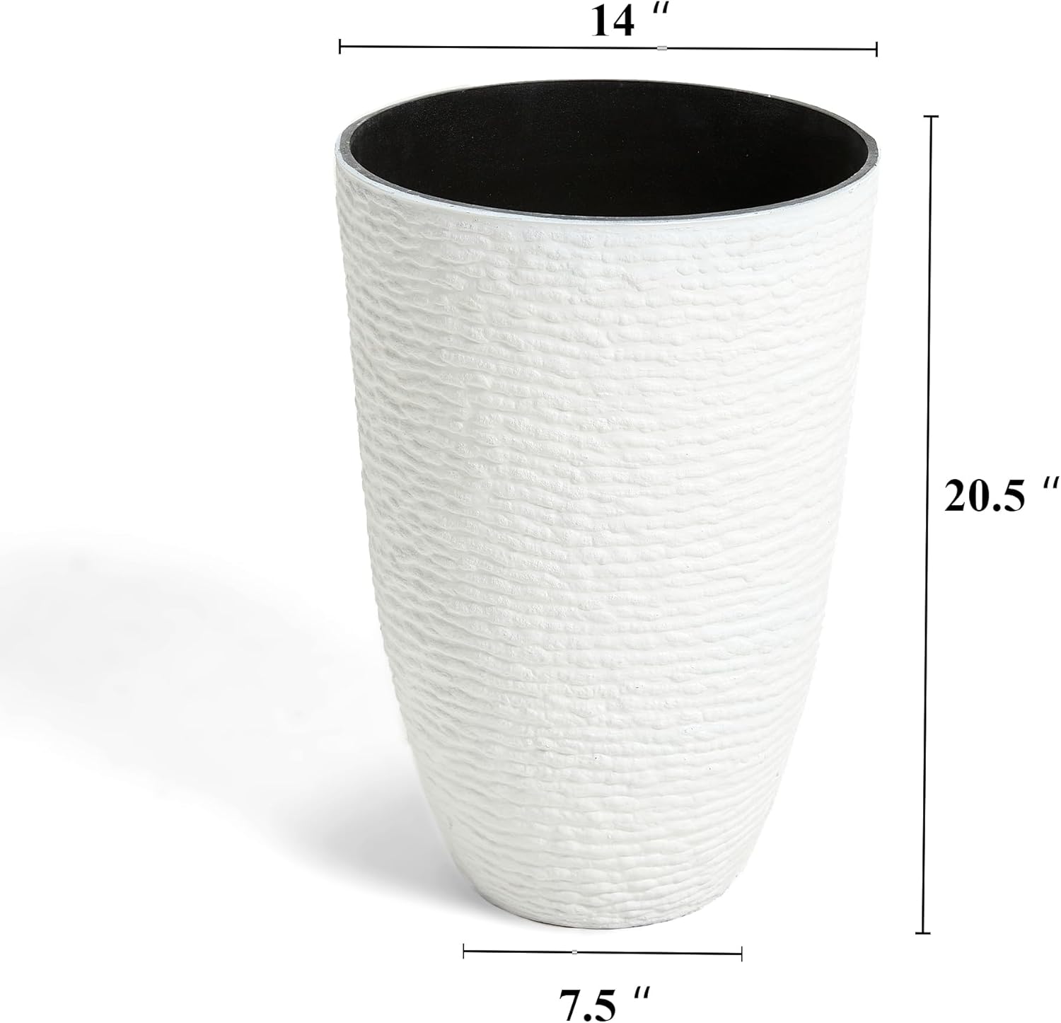 Worth Garden 2-Pack 21" H. White Tall Planters - 14'' Dia Resin Large Round Flower Pots for Outdoor Plants Trees - Imitation Stone Finish Plastic Indoor Front Porch 9 Gallon Decorative Container Patio