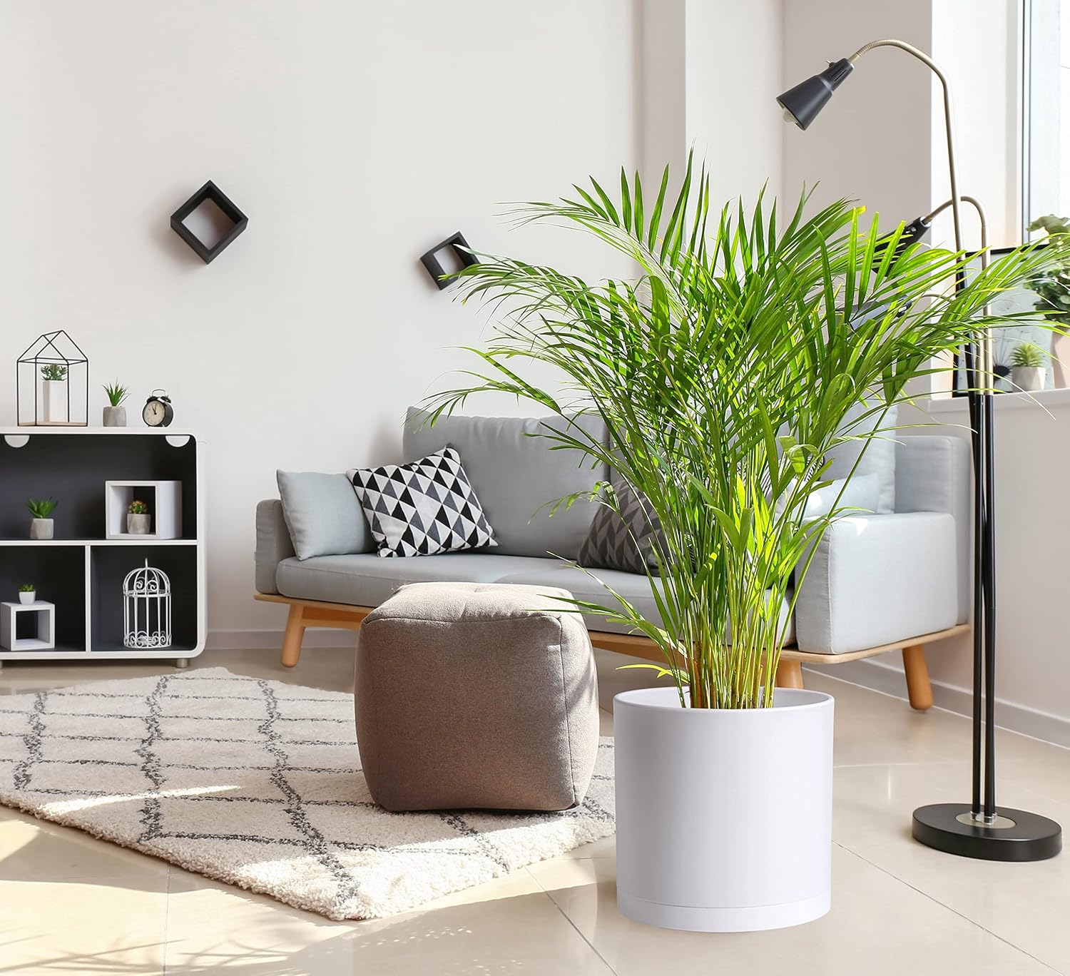 D'vine Dev 14 Inch White Plastic Planter Pots for Plant Pot with Drainage Hole and Seamless Saucers, 74-X-A-4