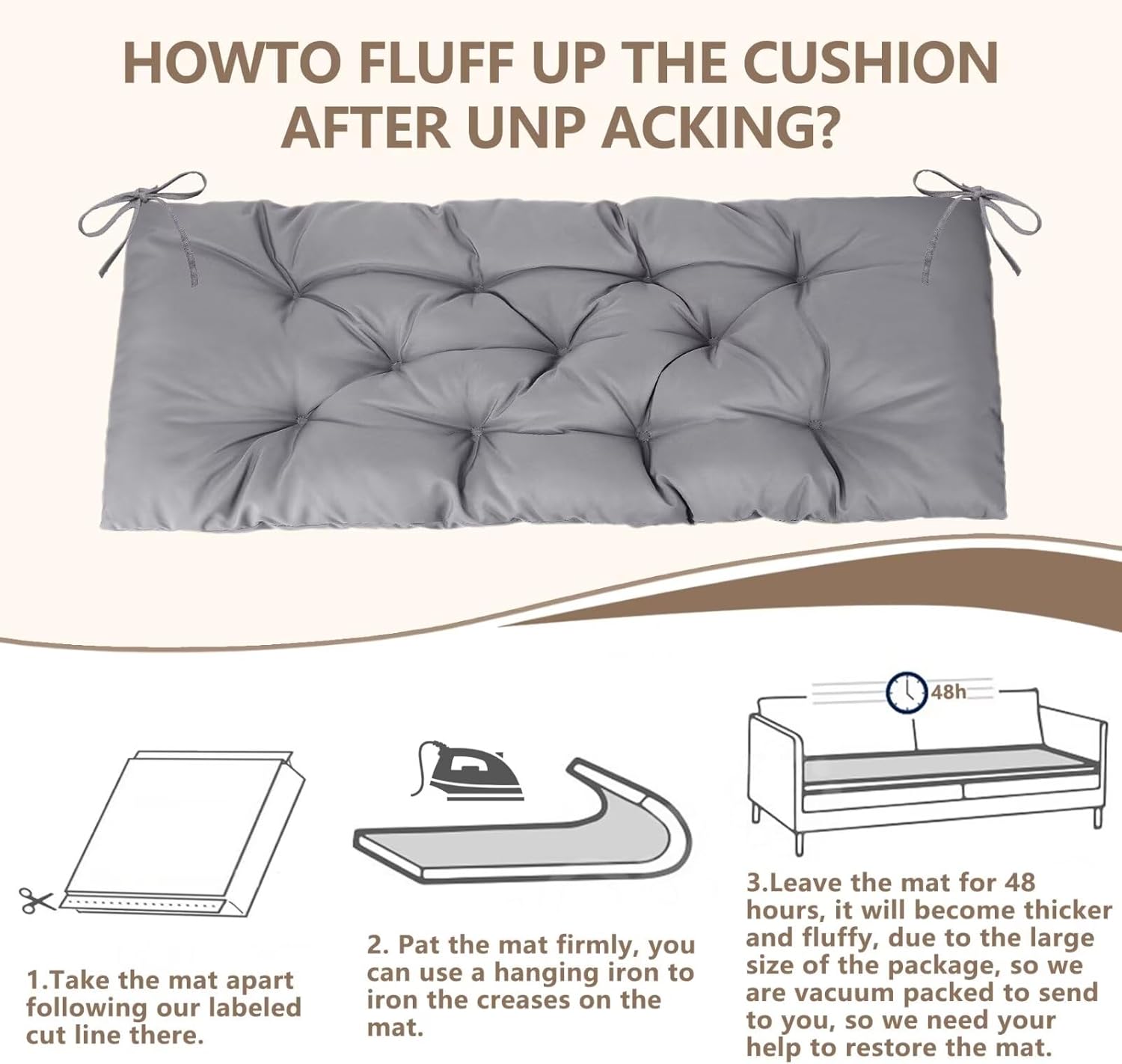 39.3in Waterproof Indoor/Outdoor Garden Bench Seat Cushions,Thicken Patio Bench Soft Rocking Chairs Pad Lounger Seat for Wicker Loveseat Settee(39.3 X 19.10 in,Light Grey )