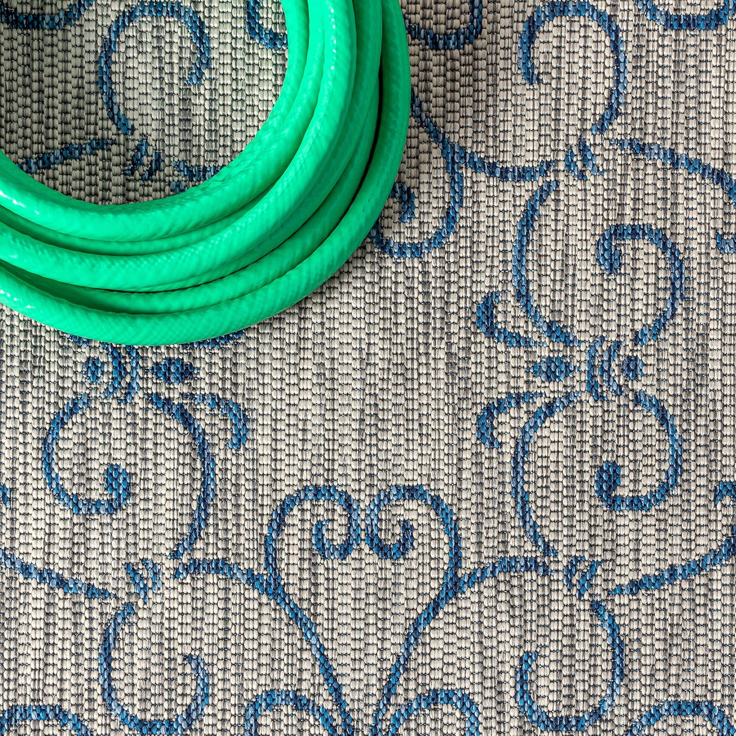 JONATHAN Y SMB106C-5R Charleston Vintage Filigree Textured Weave Indoor Outdoor Area Rug Classic Coastal Easy-Cleaning Bedroom Kitchen Backyard Patio Non Shedding, 5' Round, Gray/Navy