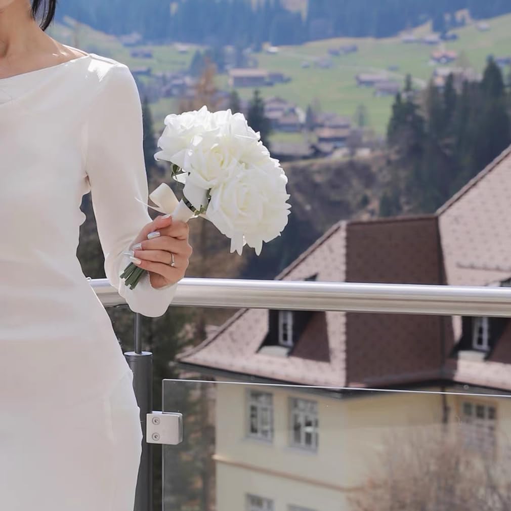 - [Realistic Bouquet] The artificial rose heads and leaves are made of silk material, with real touch feeling. The stem is with steel inside and plastic outside, easy to bend.Different from ordinary flowers, The rose uses a special process to preserve the real touch,, making them look like fresh roses Same blooming romantically.