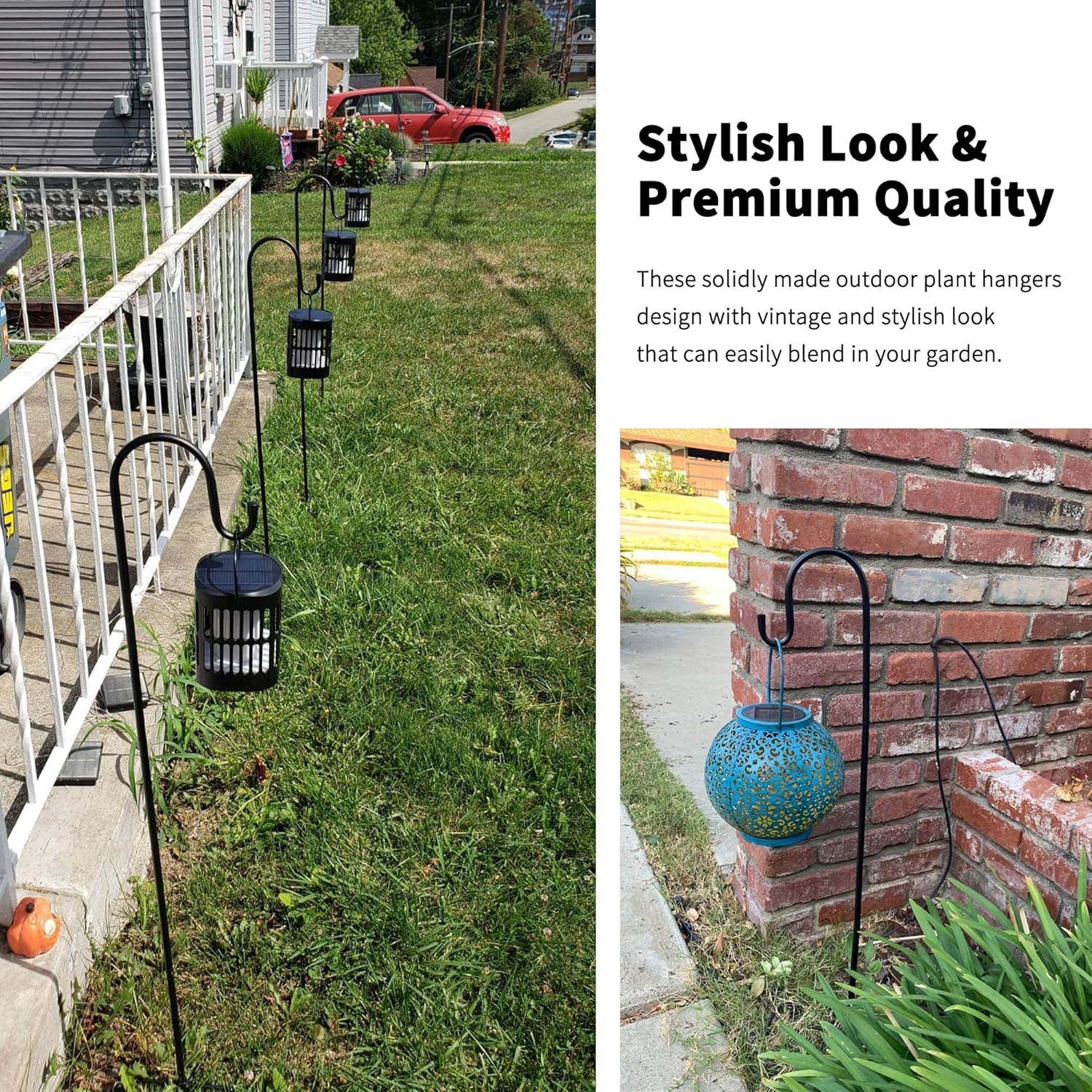 - 【Upgraded in Stability & 5 Base Prongs】Compared to other similar hooks in the market, our heavy duty shepherds hooks have upgraded with 4 extra long and double-forked base prongs to be total 5 prongs which makes it the strongest garden hook in the market and maintain a fixed, upright posture while remaining firmly planted in the ground without easily falling down.