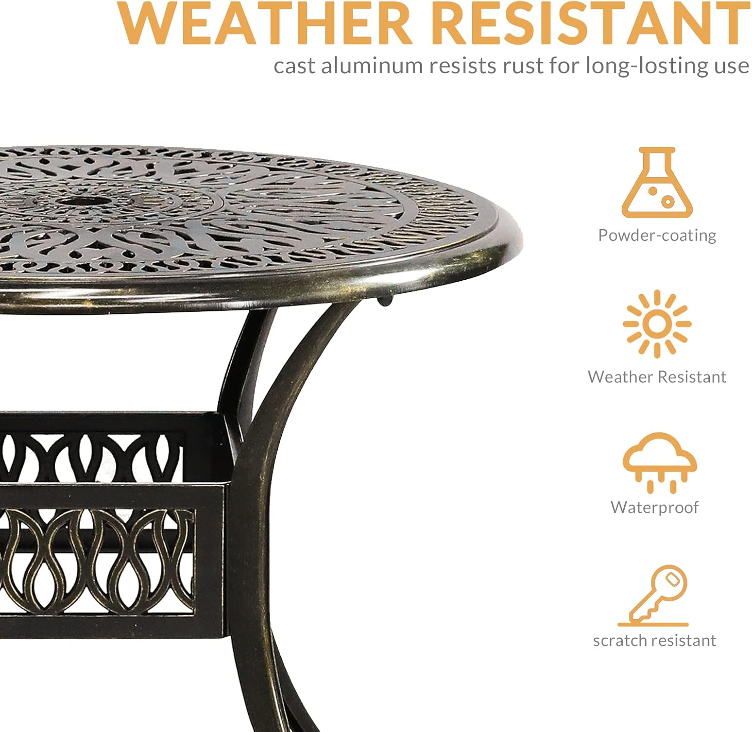 - 【Durable 3-Piece Dining Set】 - Made from cast aluminum for long-term durability. Resistant to rust, weather, fade, crack. This patio set includes 1 round table, 2 chairs, and they stay in perfect condition regardless of the weather. It's also easier than ever to clean, just use a dry or damp rag to wipe down.