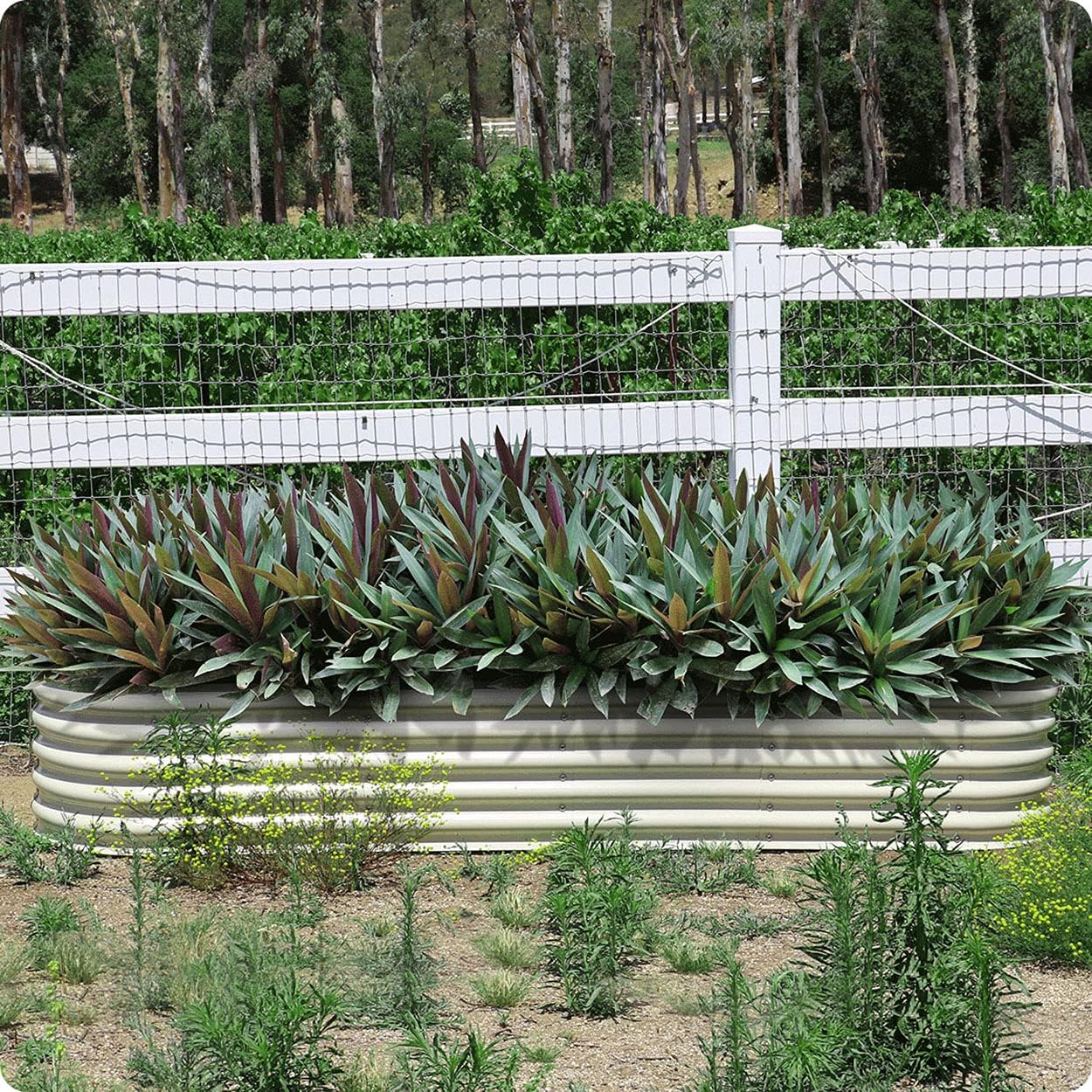 Olle 17" Tall 12-in-1 Sizes Raised Beds for Gardening Galvanized Planter for Vegetables Large Metal Raised Garden Beds Outdoors Size 5X5 Feets 8X2 Feets, Ivory 17" Tall
