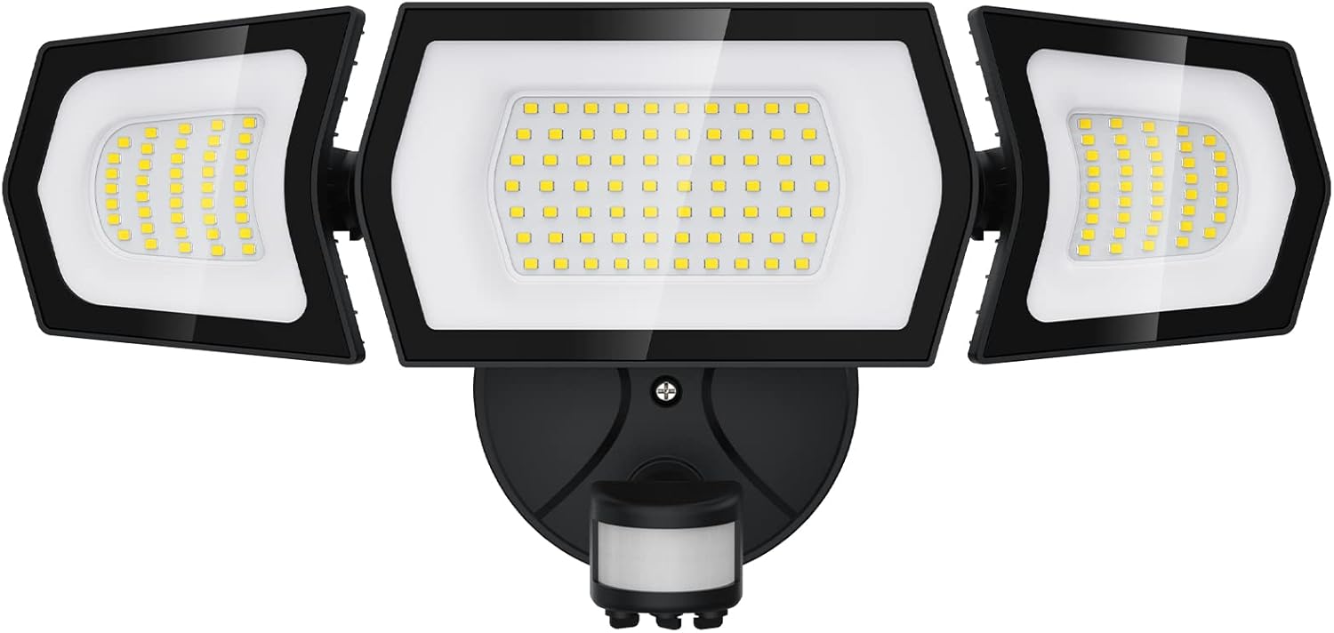 - 100W Super Bright and Energy Efficient: Each security light contains 112 high quality super bright LED beads that produce a high brightness 6500K clear white light with up to 9000lm lumens. Equivalent to the brightness of a 400W traditional lamp, it is not only environmentally friendly, but also saves you a significant amount of money on your electricity bill