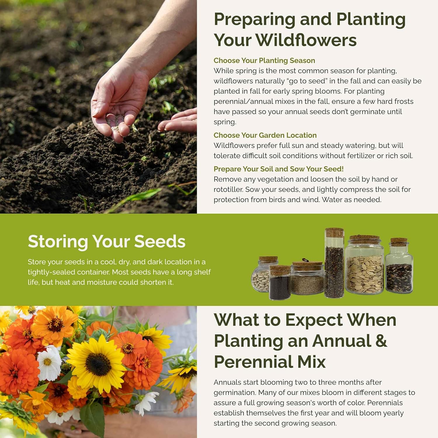 - Perfect for Zones 3-10 - This bulk outdoor mix is a mix of annual and perennial varieties and suitable for all USDA hardiness zones, 3-10. These animal resistant, low-maintenance varieties prefer full sun and will produce mixed color blooms all summer through fall.