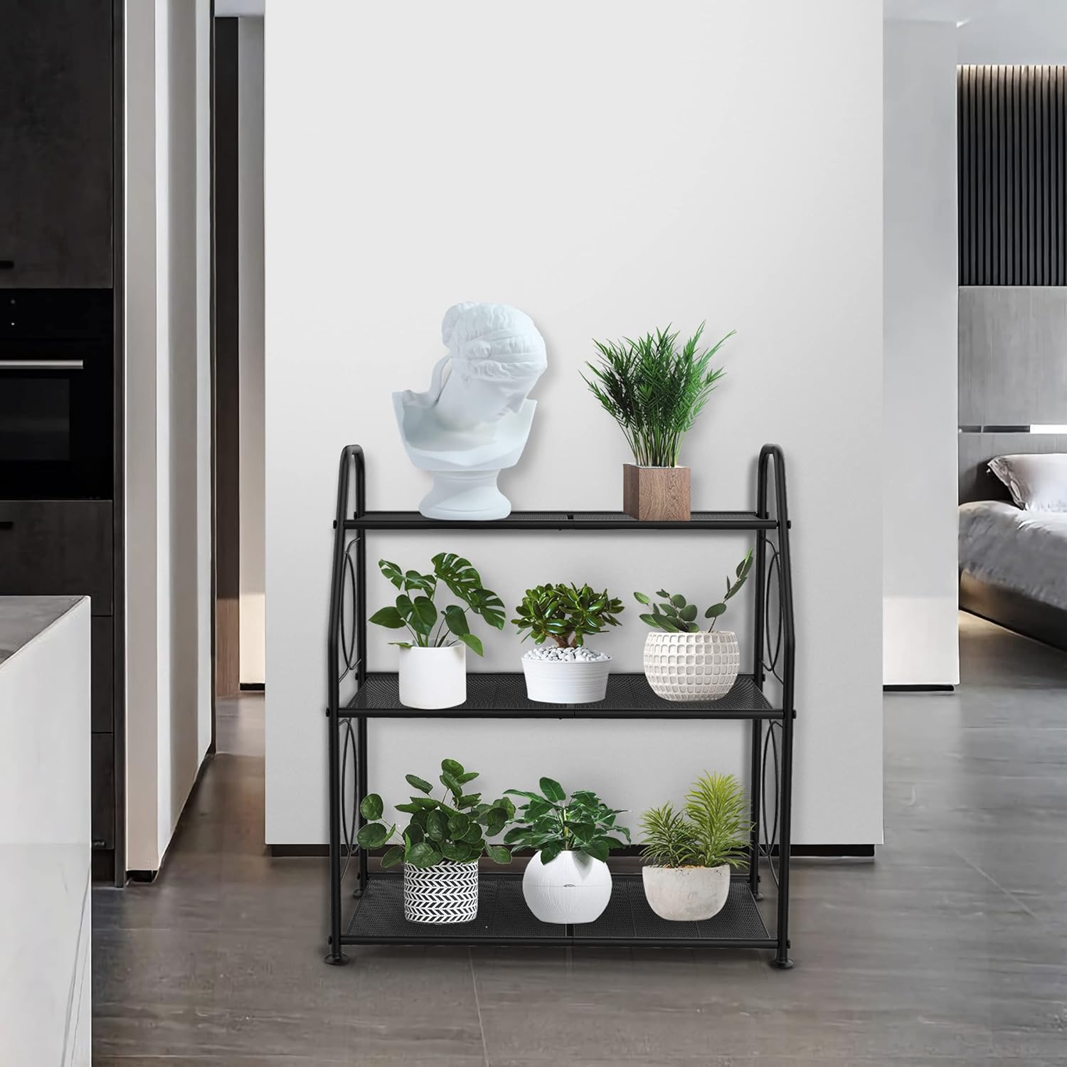 Plant Stand, 3 Tier Plant Shelf for Indoor Outdoor, Heavy Duty Metal Outdoor Plant Stand Holder Rack for Living Room Balcony and Garden, Black