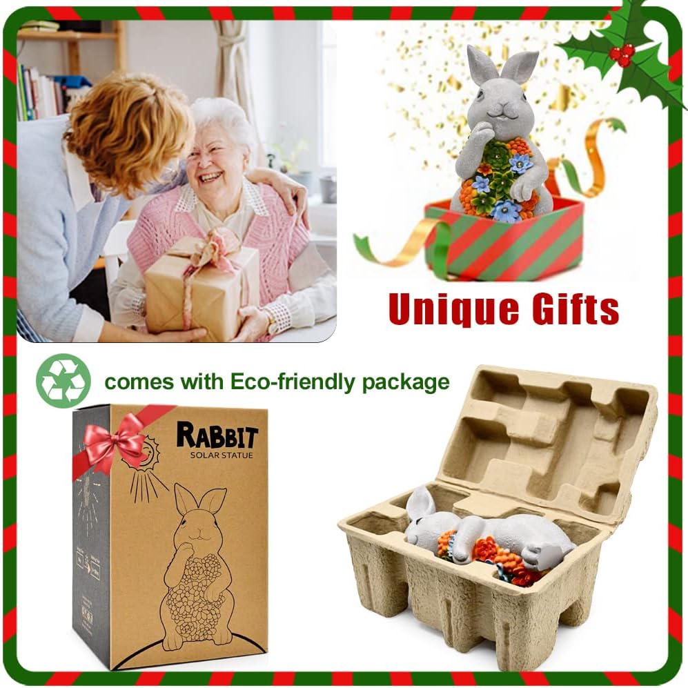 Nacome Garden Outdoor Statues Bunny with Succulent and 7 LED Lights – Lawn Decor for Patio, Balcony, Yard Ornament - Unique Housewarming Gifts