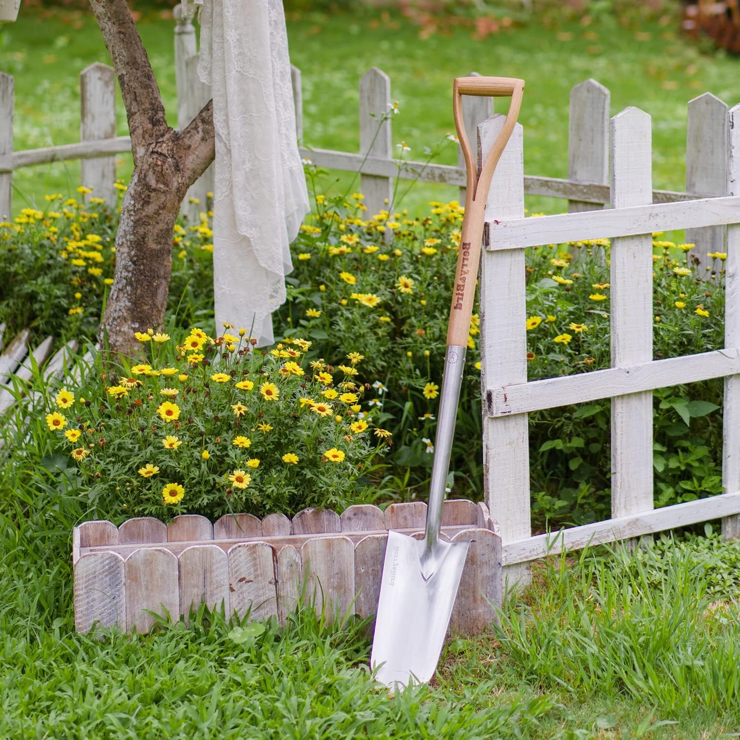 - 🌱Ergonomic Wood Handle: The handle of this planting spade is made of ash hardwood harvested from FSC-certified forests and has an ergonomically streamlined design, making it very suitable for everyone's hands. This specially designed handle can effectively reduce the fatigue of our hands and prevent injuries. The non-slip D-shaped handle keeps your wrist in a neutral position to reduce stress, providing comfort and good grip, which can firmly cut through hard and difficult surfaces.