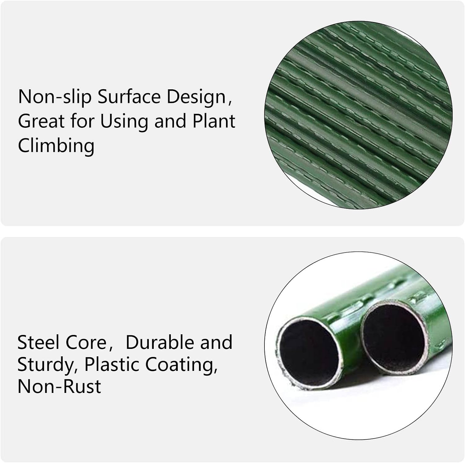 - 【Sturdy and Durable】Made of sturdy hollow steel, coated with rustproof plastic, allow the garden stakes for plants to have a longer life cycle than bamboo stakes and wood stakes, more handy and flexible than rebar and, can be reused.