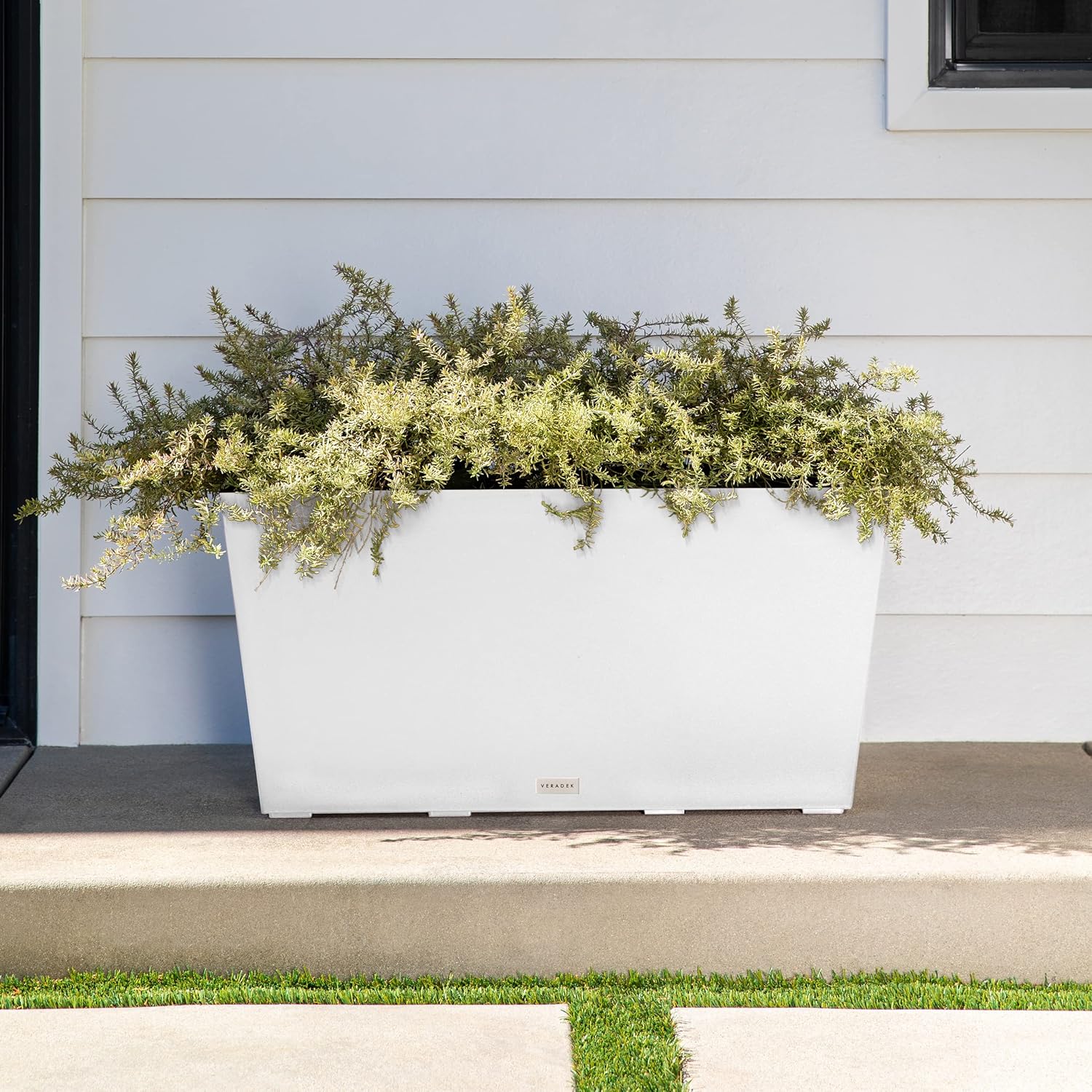 Veradek Pure Series Midori Trough Planter - Large Rectangular Planter for Indoor or Outdoor Deck/Porch | Durable All-Weather Use with Drainage Holes | Modern Decor for Shrubs, Flowers, Small Plants