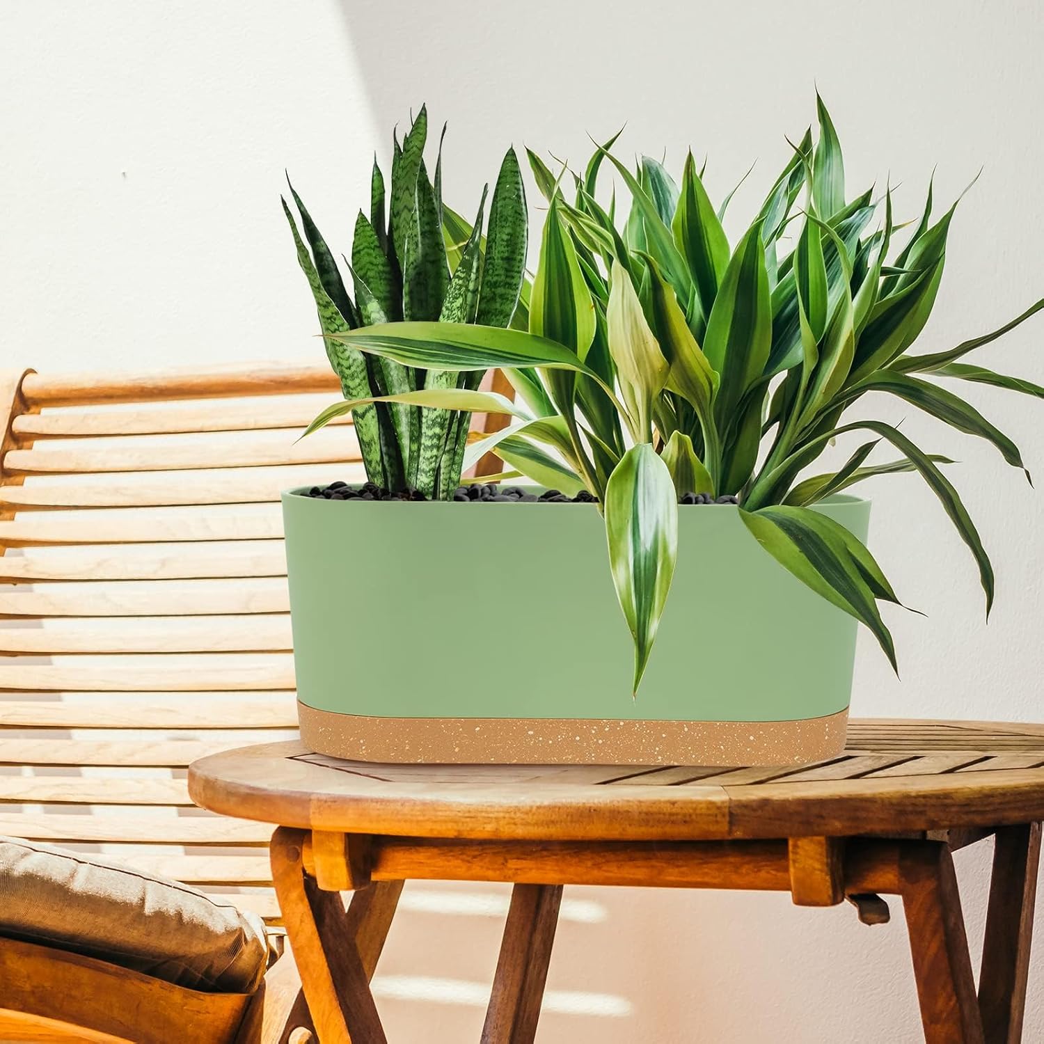QCQHDU 16" L x 7.6" W x 7" H Window Planter Box, 2 Pack Self Watering Pots for Indoor Plants with Drainage Holes & Saucer, Outdoor Flower Pots Home Garden Modern Decor