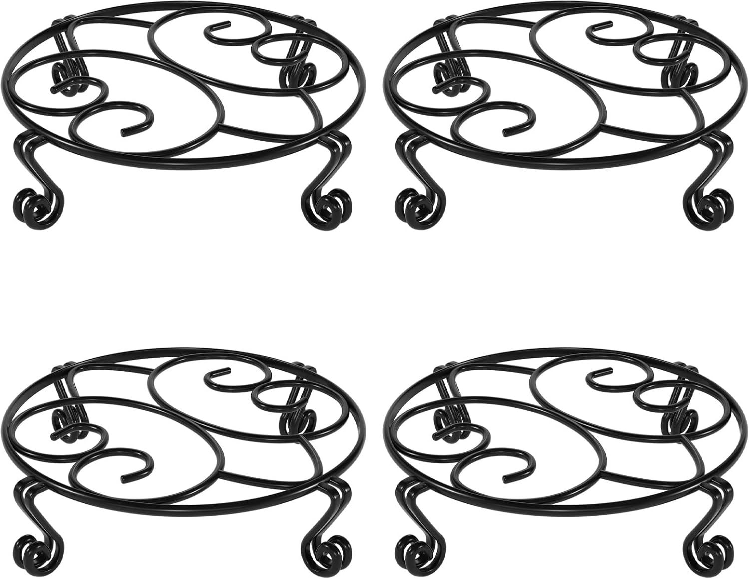 Yimobra Metal Plant Stand for Flower Pot 4 Pack Heavy Duty Potted Holder Indoor Outdoor Rustproof Iron Garden Container Round Supports Rack for Planter (4PC Black 10.24 x 2.36 IN)