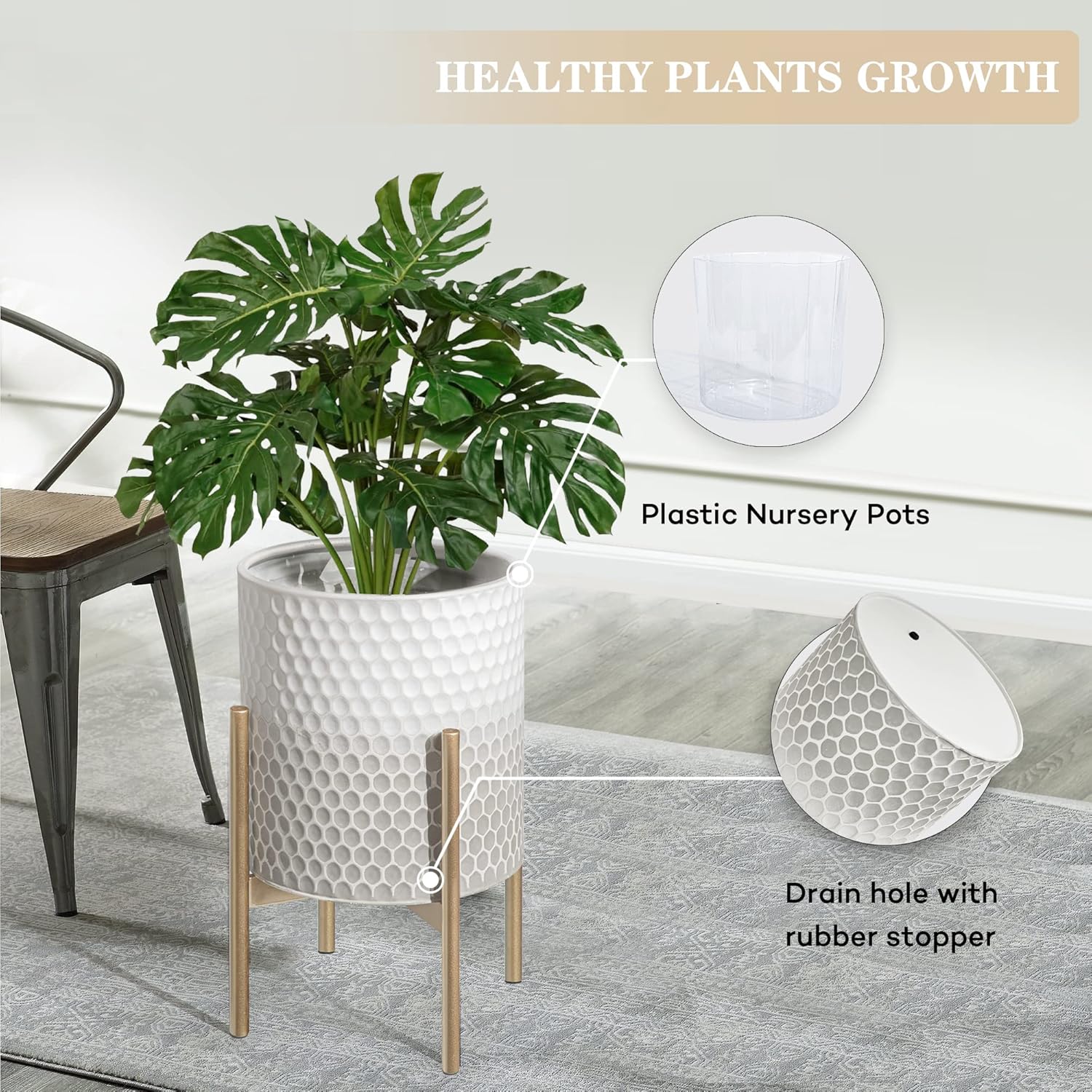 - Modern Planter: The gradient planter is paired with a gold metal stand for a mid-century minimalist look. Unique and modern with a honeycomb design that will never go out of style. Suitable for a variety of decoration styles.