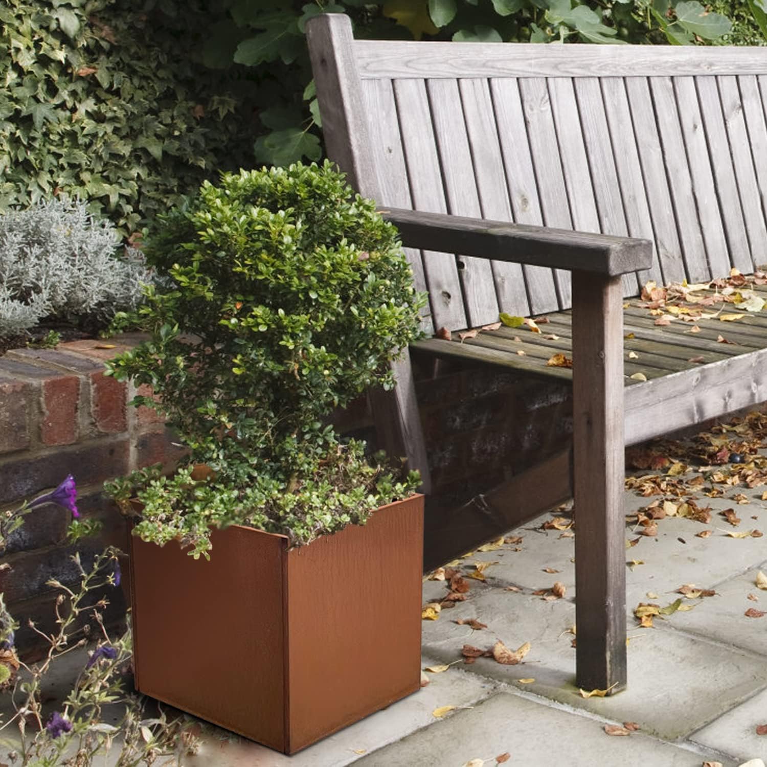 Corten Steel Planter Box Metal Planters Square Outdoor Steel Planter Cube Rustic Flower Pot 16 Inch Integral Durable Antique for Commercial Residential Garden Patio Deck and Backyard