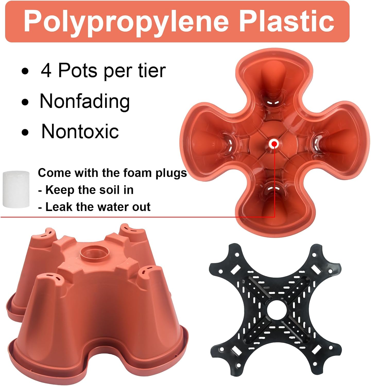 DUNCHATY 5 Tier Plant Pot, Vertical Garden Planter, Strawberry Planter, Indoor/Outdoor Planters, 2 Set, Brick Red, 29 x 13.6 x 13.6 inches
