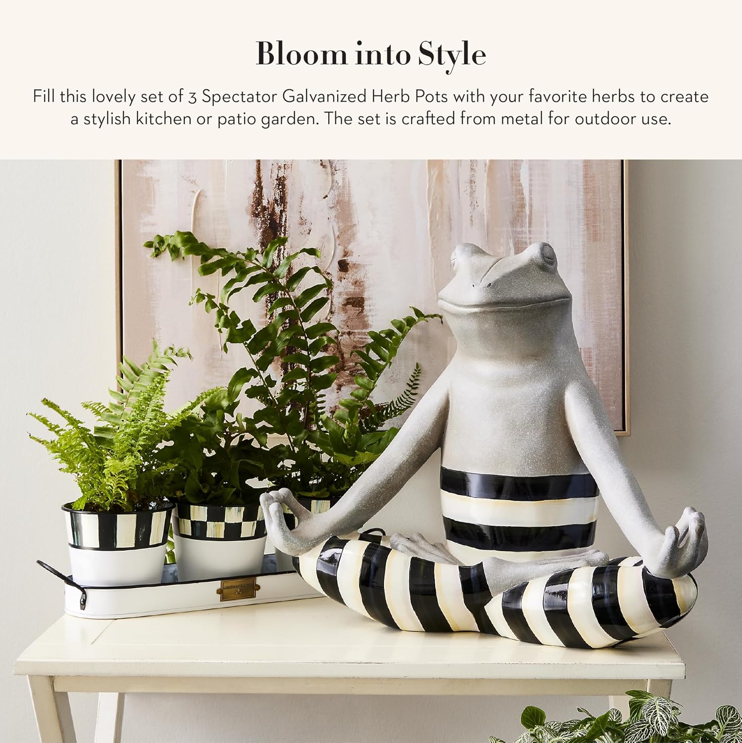 - ELEGANT INDOOR PLANTING ESSENTIAL: Whether you’re planting fresh seasonings or creating a beautiful indoor garden, our Spectator pots for herbs are covered in style. They feature black-and-white checked and striped patterns on a galvanized planter base.