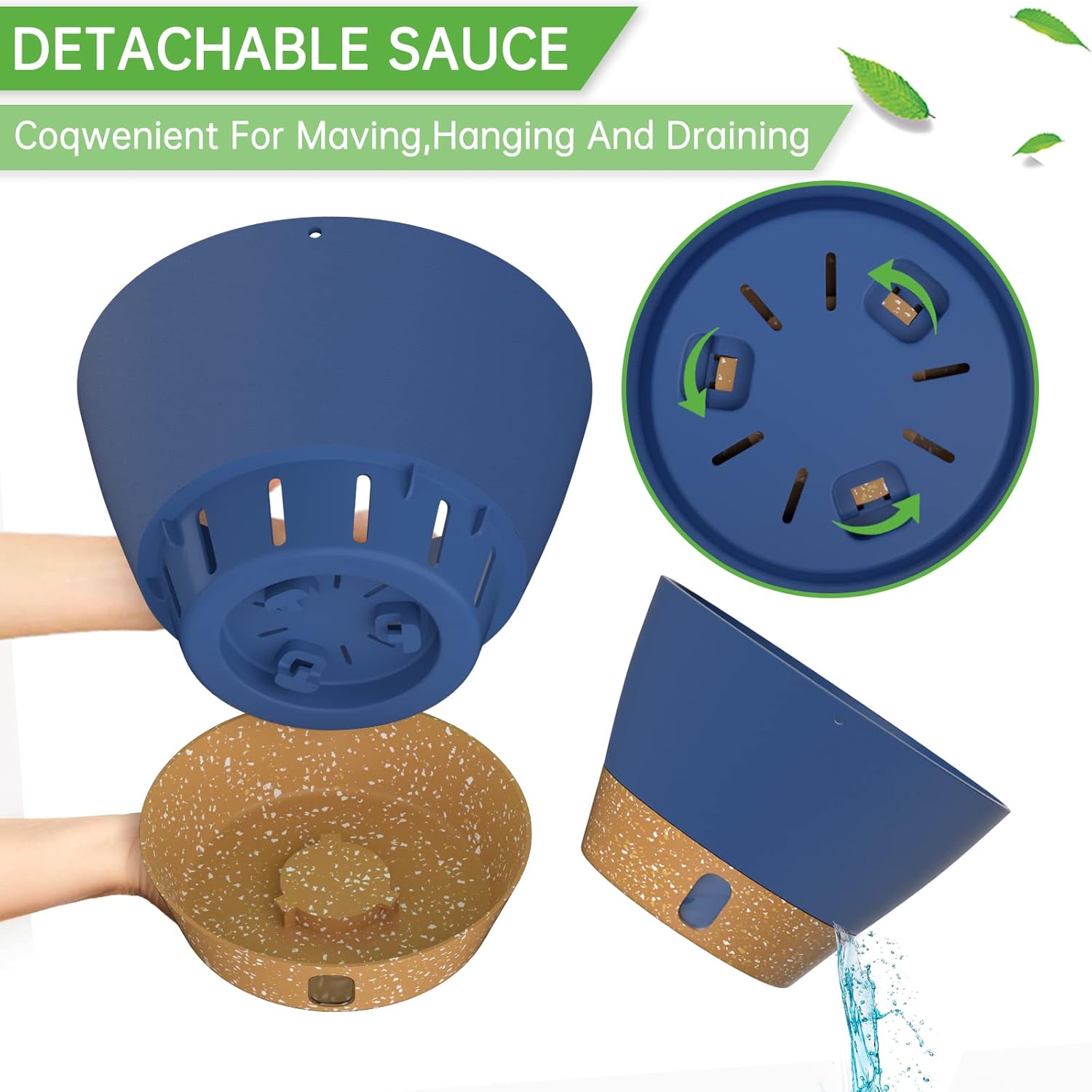 ZMTECH 8 Inch Hanging Planters for Indoor Plants, Hanging Baskets for Plants Outdoor with Visible Water Level, Hanging Flower Pots with Drainage Holes & Removable Tray(2 Pack, Blue)