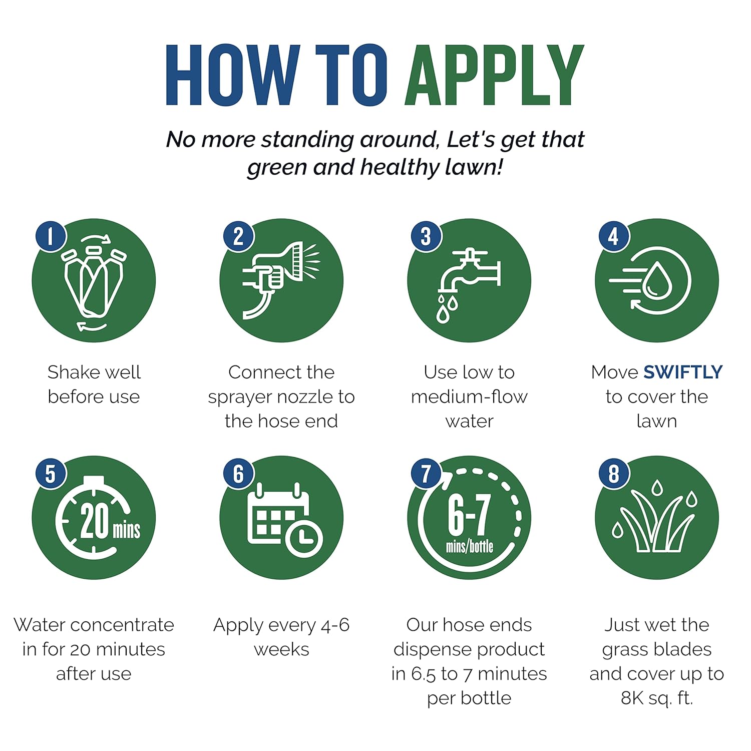 - Effortless Application with Hose End Sprayer: Upgrade your lawn care routine effortlessly with our hose-end grass fertilizer for lawn. Shake, apply, and witness the transformation of the grass. Apply the liquid formula every 4-6 weeks to provide energy, nutrients and stress relief to your lawn and soil