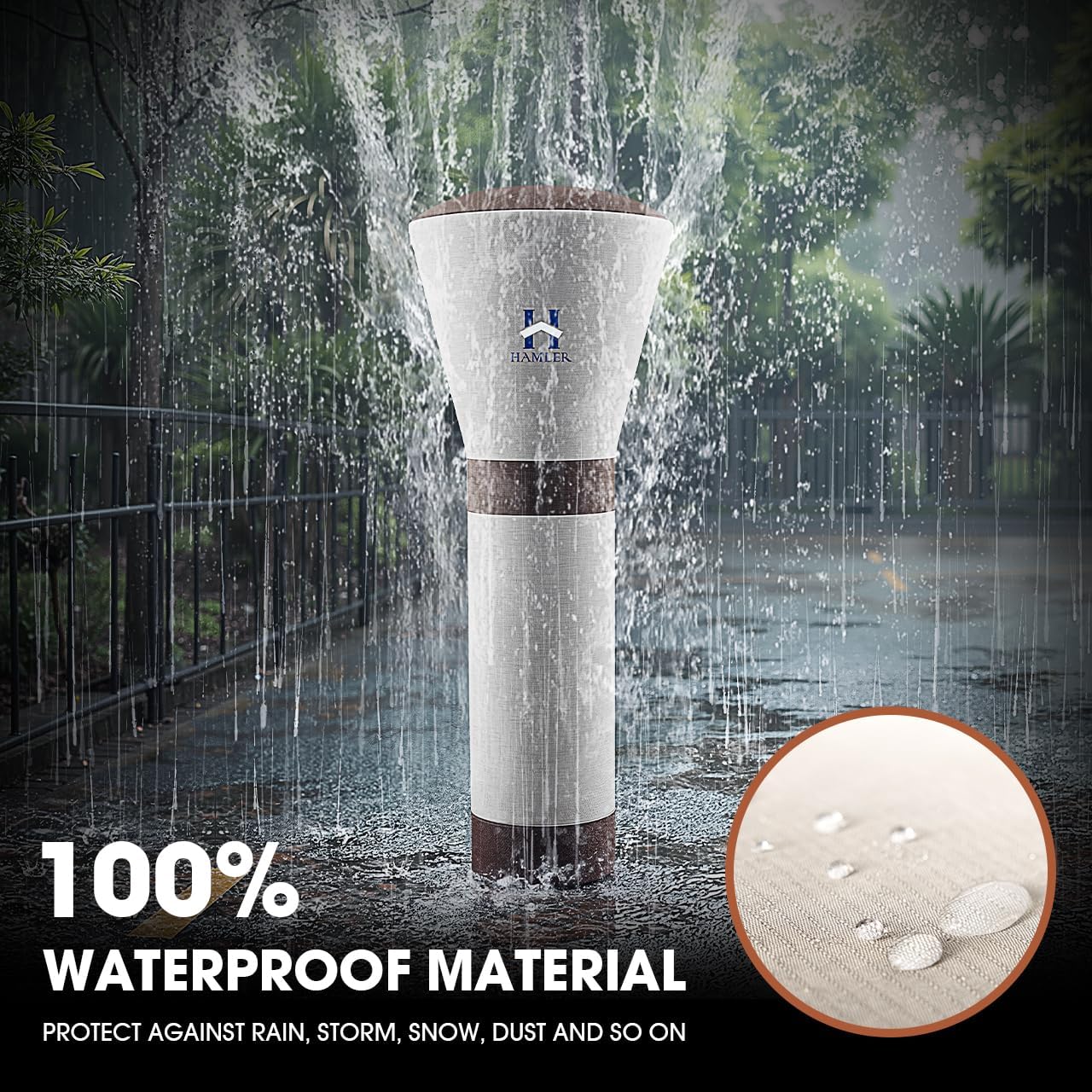 - WATERPROOF MATERIAL: The heater cover is made of oxford cloth laminated with UV protection and waterproof coating, as well as waterproof strips lined with material to keep your patio heat lamp dry.