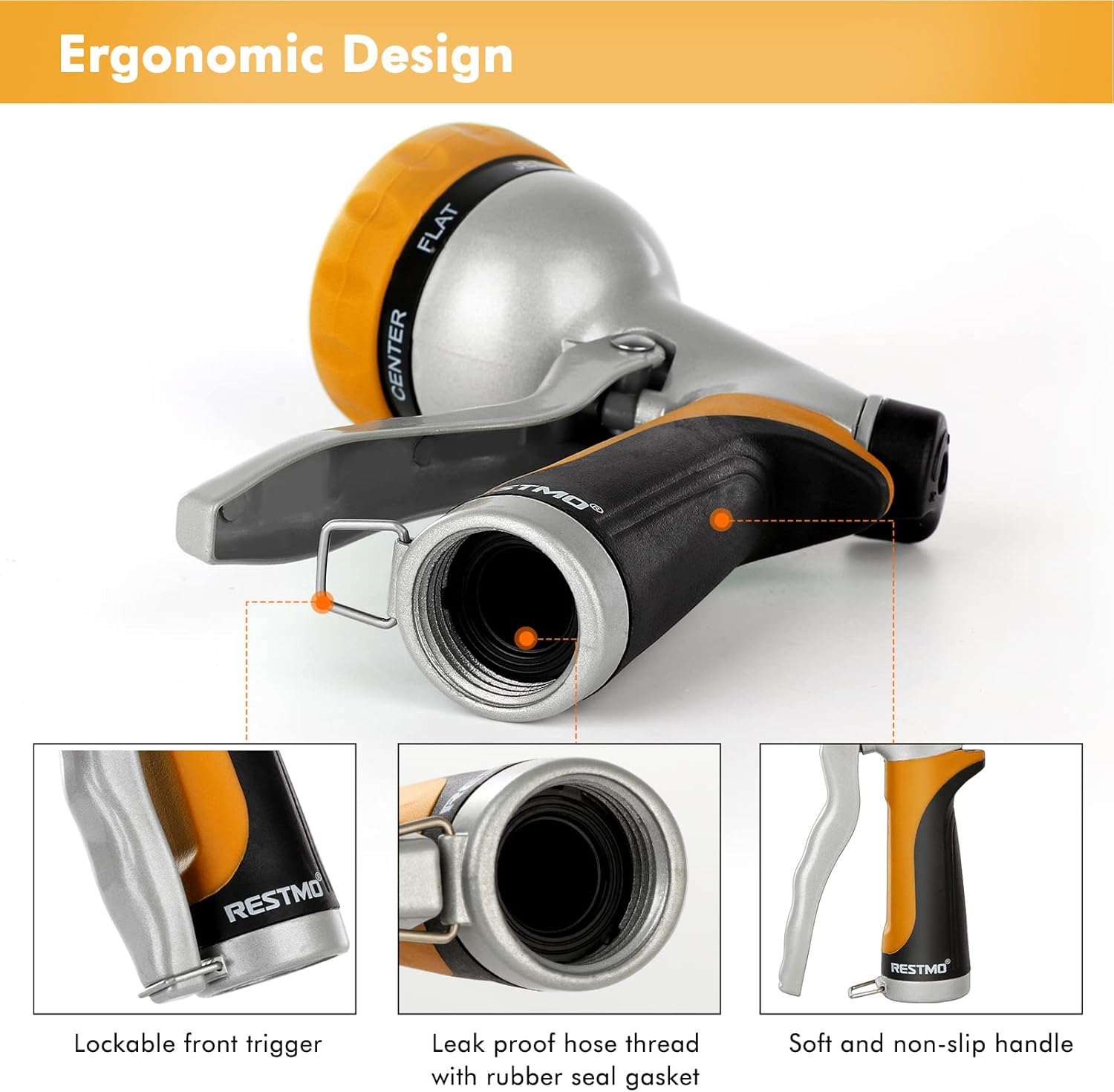 RESTMO Garden Hose Nozzle, Heavy Duty Metal Water Hose Nozzle with 7 Adjustable Spray Patterns, High Pressure Hand Sprayer with Flow Control, Best for Watering Plant & Lawn, Washing Car & Pet, Yellow