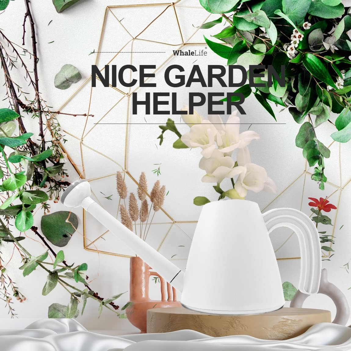 WhaleLife Indoor Watering Can for House Bonsai Plants (2.0L, White)