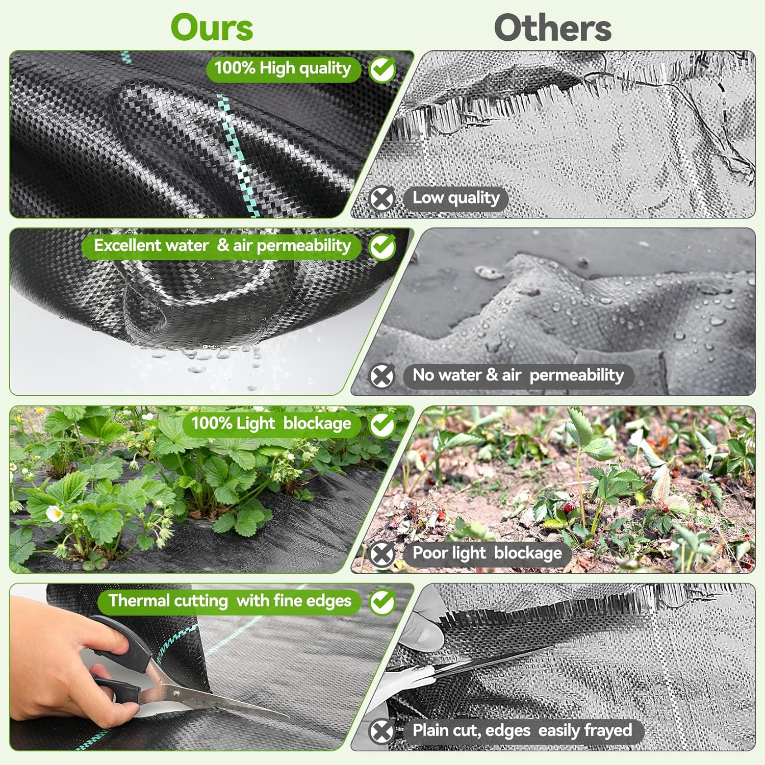 - [ Sturdy and Durable ] - Heavy duty garden weed barrier fabric is made from high quality polypropylene material, which means it is very strong and can resistant to tear, high temperature and last for years.