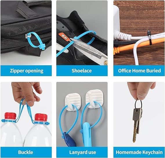 - ★【Easy-using】You only arrange the things to be bundled, and then bend one side of the small saw blade inward, pass the arrow through the other part of the button, and easily pull it.