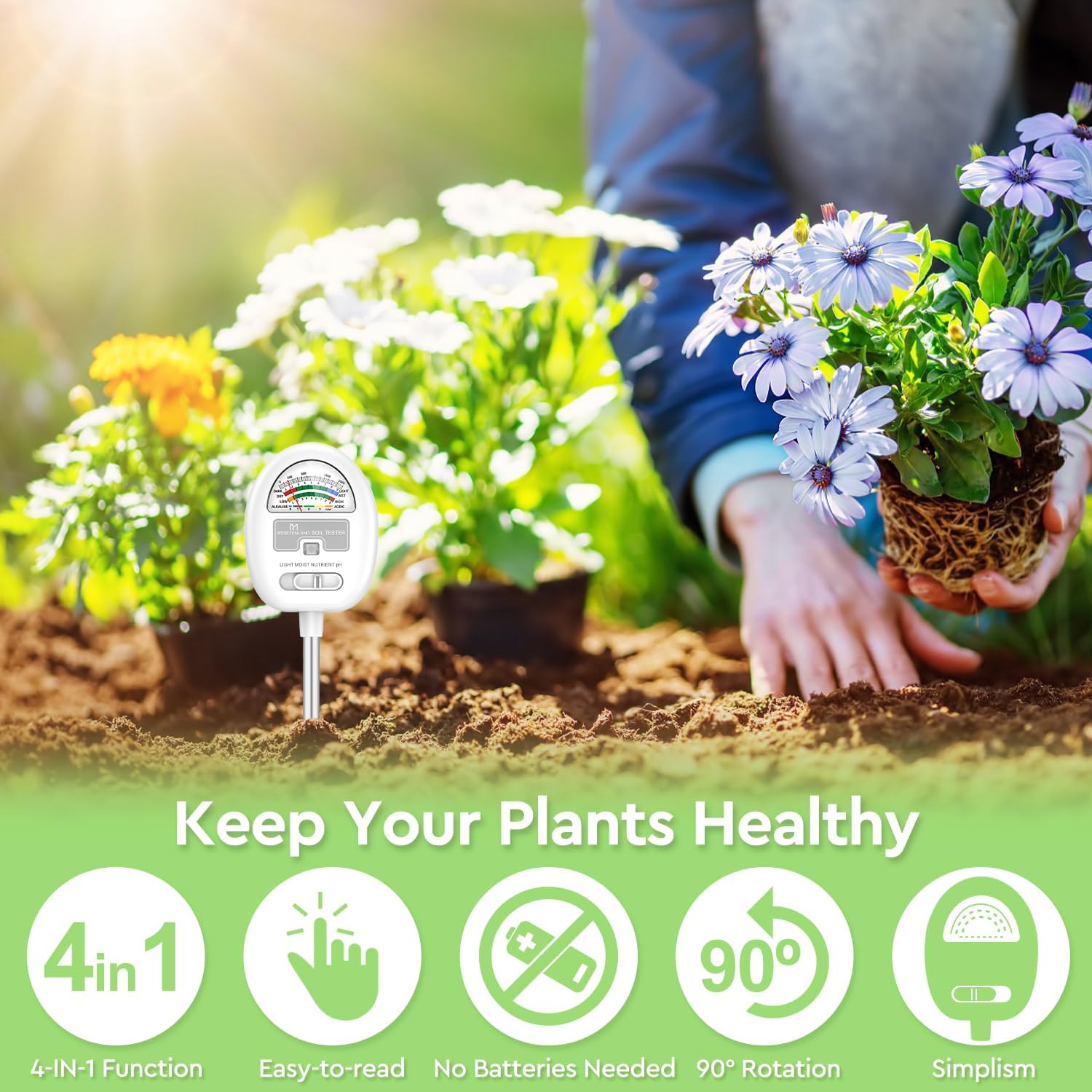[Upgraded] Soil Moisture Meter, 4-in-1 Soil pH Tester, Moisture/Light/Nutrients/pH Meter for Gardening, Lawn, Farming, Indoor & Outdoor Plants Use, No Batteries Required, Gifts for Plants Lover