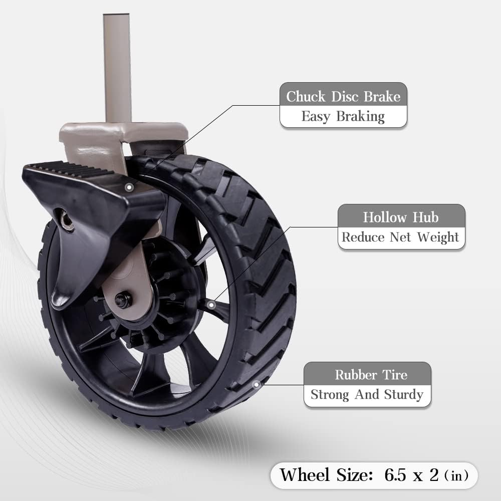 - Two Brakes & Built-in Dual Bearings: Featuring silent, 360Β° rotating front wheels; Dual-bearing design The double bearing design makes smooth rolling on mud, grass, and sand; two brakes allow the wagon to stop smoothly on slopes