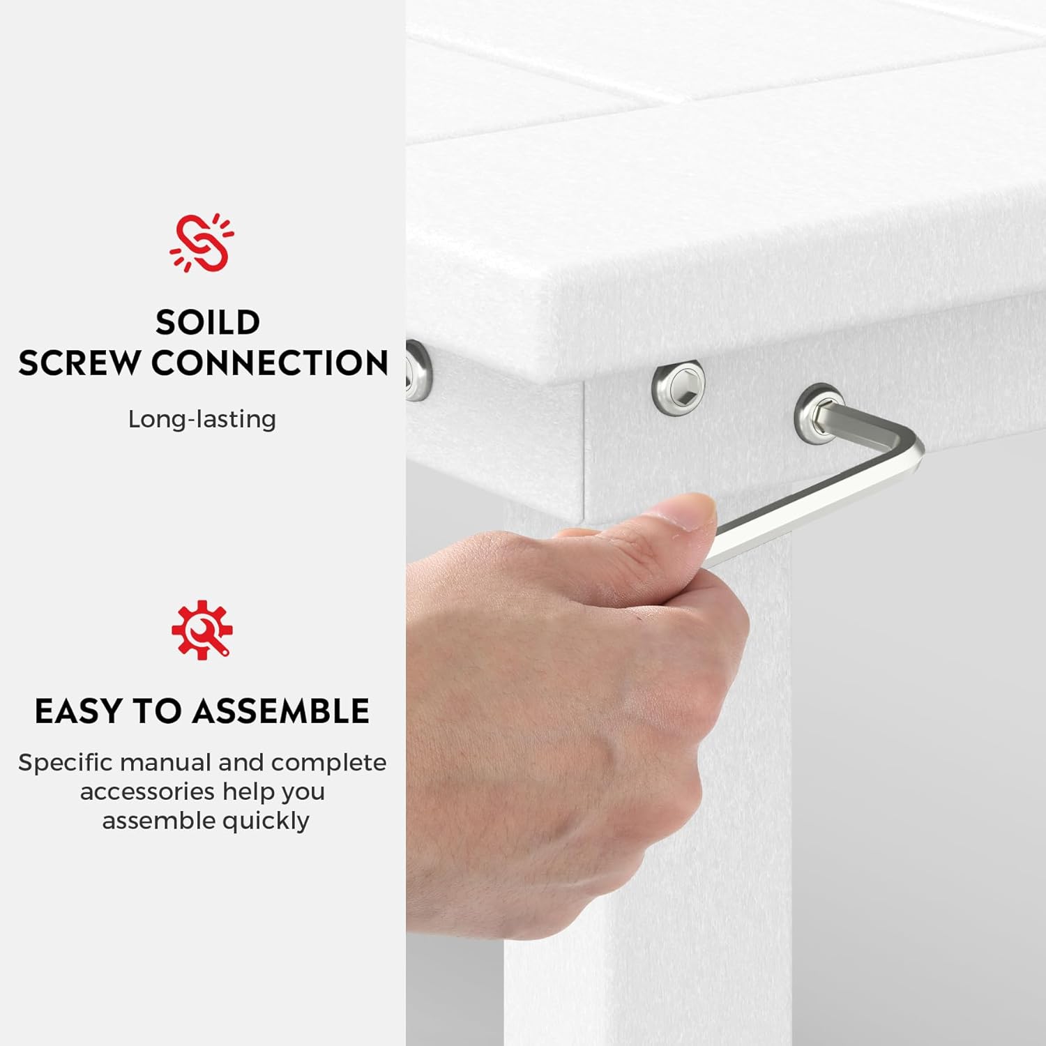 Outdoor Benches Weatherproof, Park Long Bench Poly Lumber Backless for Entryway Front Porch Garden Bench Seat for Patio, White