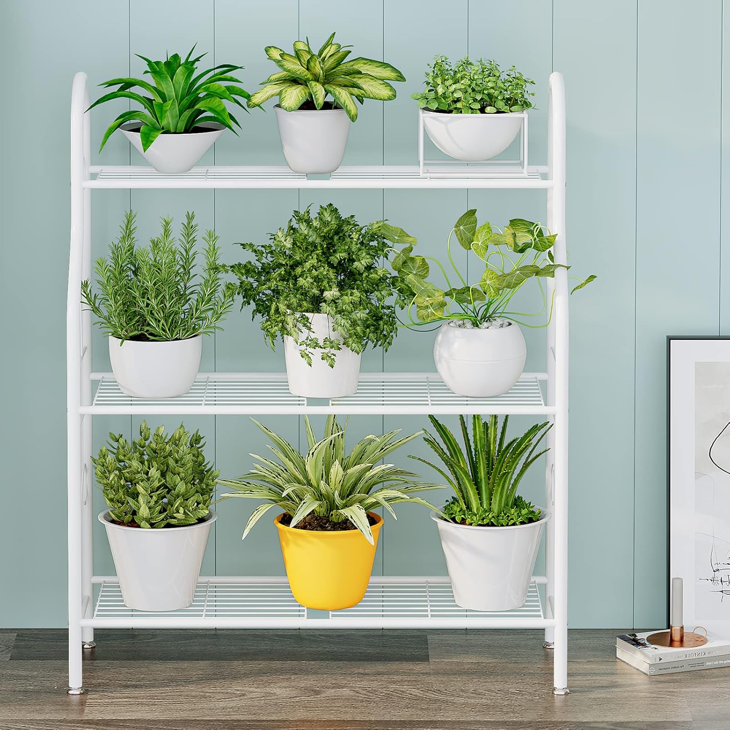 - WATERPROOF ANTI CORROSION The 3 tier plant stand is made of high quality iron, the matte powder coated tubular will not rust or Waterproof, easy to clean and can be used indoors or outdoors.