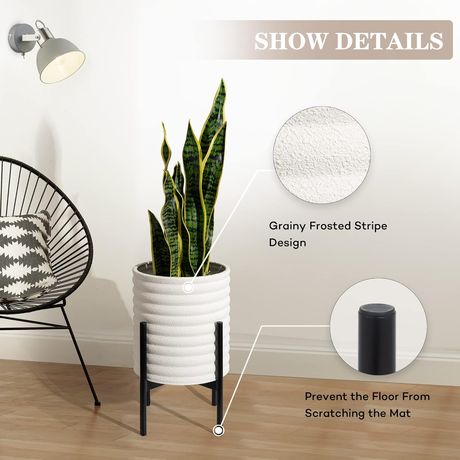 - Mid Century Planter: Black metal stand paired with a classic white planter for mid-century simplicity. A flower pot with a striped design, coated with frosted particles, is simple and atmospheric, never goes out of style. Suitable for a variety of decoration styles.