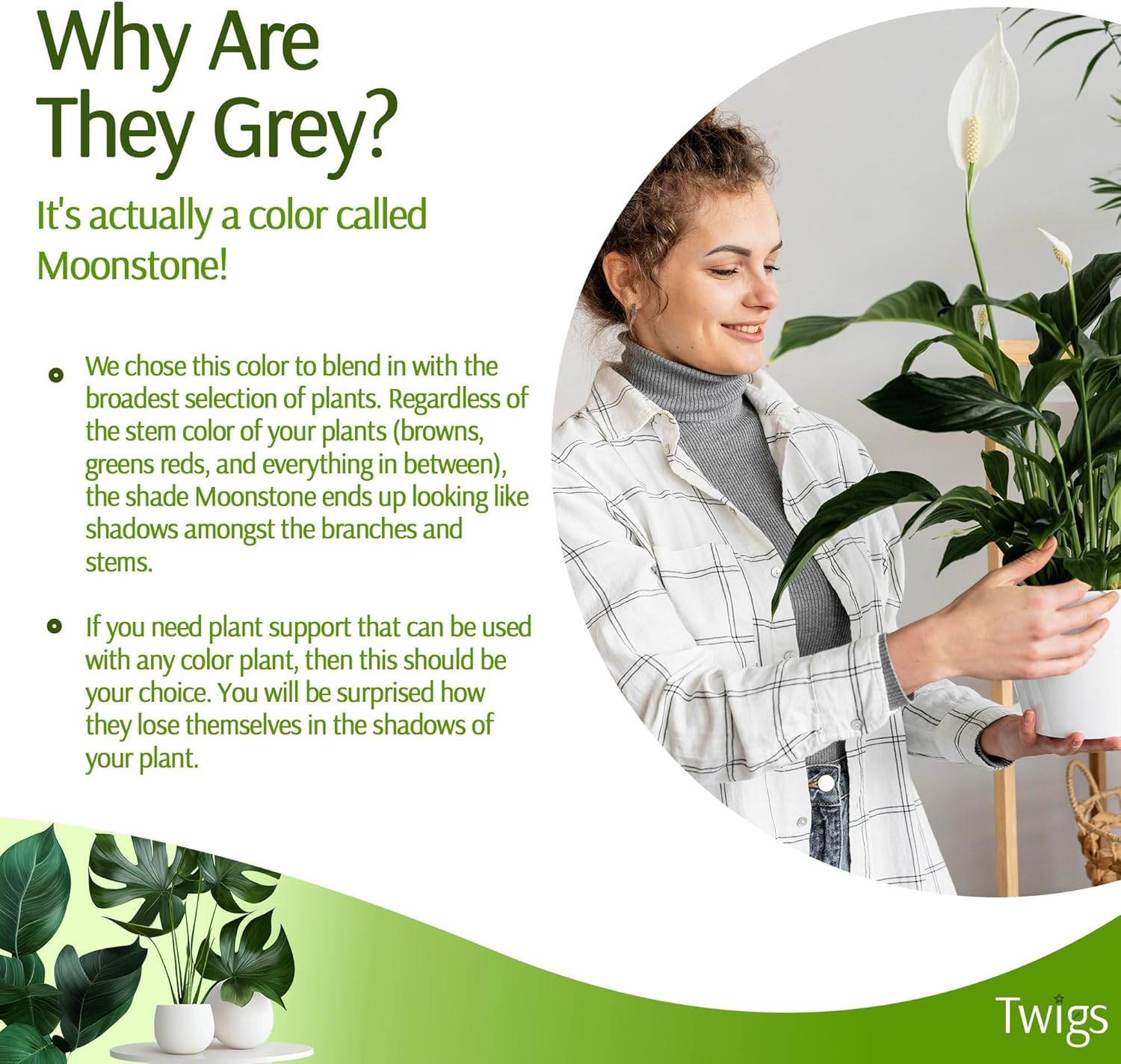 - ESSENTIAL PLANT ACCESSORIES: Twigs GA plant support stakes are a must-have for any plant lover. These stakes offer reliable support without sacrificing the aesthetic appeal of your living space. Note: Twigs are not meant to support large plants over 5 ft or stems greater than 3/4".