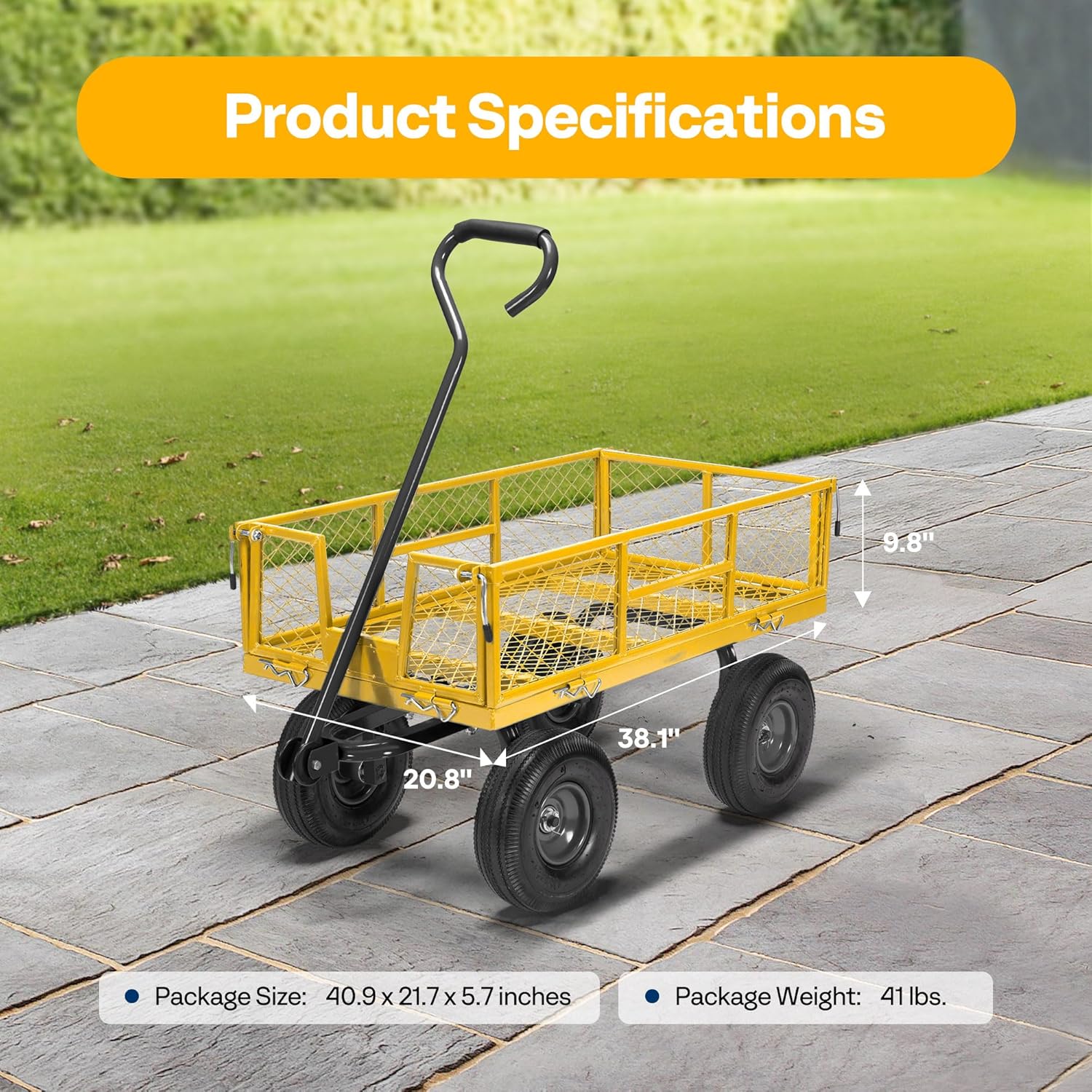 VIVOHOME Steel Garden Cart Heavy Duty 880 Lbs Capacity Folding Utility Wagon with Removable Sides and 10 inch Wheels (Yellow)
