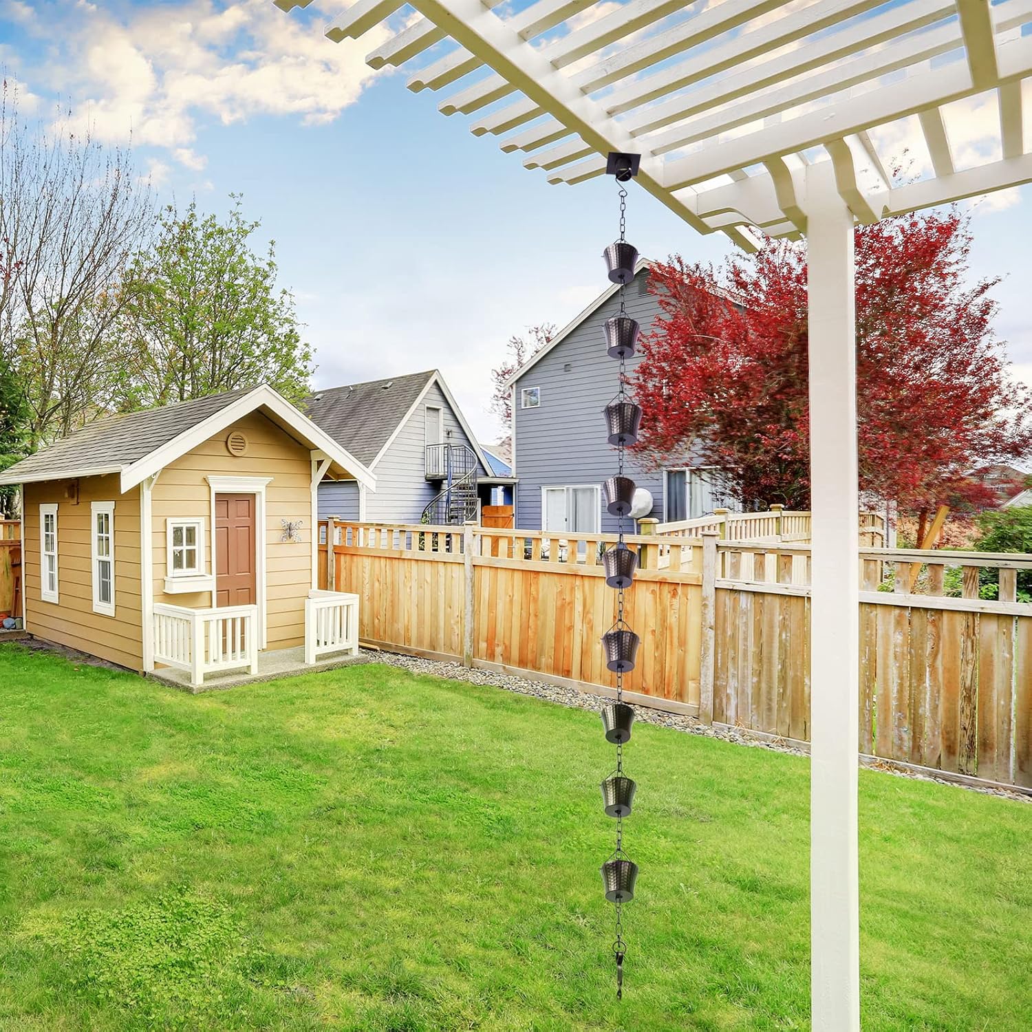 - Functional Downspouts: The rain chains for outside can be used as an alternative to traditional downspouts or simply as a decorative hanging garden ornament to create a gorgeous vertical water feature.